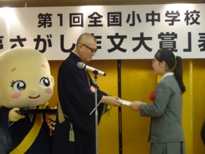 鬼生田俊英宗務総長がそれぞれに賞状を手渡し、記念品と賞金が贈られた。鬼生田総長は「内容の高さに非常に感心しております」と嬉しい驚きで祝った。