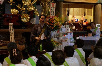 自坊では、「24時間いつでも電話してきてね」と檀信徒に呼びかける。都会から移り地域になじめないとの相談や嫁姑問題まで身近な悩みに応えてきた。一般の人向けの写経や御詠歌の教室も催し、開かれた寺を目指している。元会社員の夫も支えてくれる。