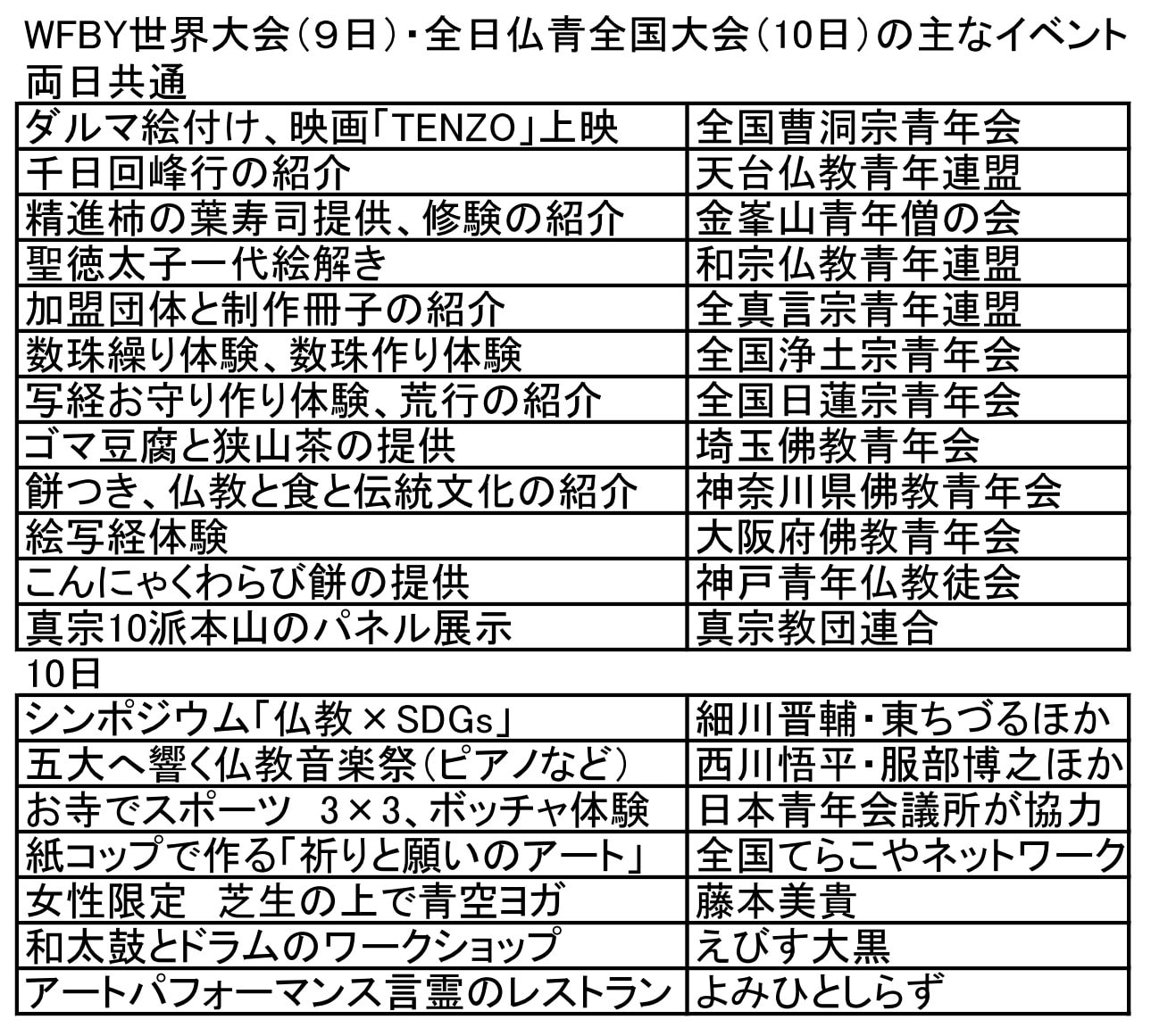 WFB大会後の会見でWFB副会長は青年僧の活躍を讃えた。日本への仏教伝来は西暦538年(552年説あり)だが、20年後の2038年は仏教伝来1500年を迎える。現在の若者や青年僧が社会の中心となる時代である。各教団はこの時期を想定して中長期ビジョンを展望してみてはどうだろうか。