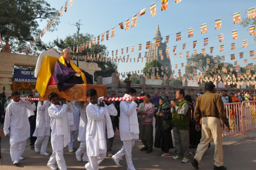 ブッダガヤの大塔を仰ぎつつ印度山日本寺に晋山する北河原竺主(2017年1月) 昨年(2017)1月、インドのブッダガヤにある印度山日本寺の第6世竺主として晋山しました。国際仏教興隆協会(東京都目黒区)が運営しています。各教団へ就任の挨拶まわりをしましたが、仏教界の方々があまり認識されていないのには驚かされました。