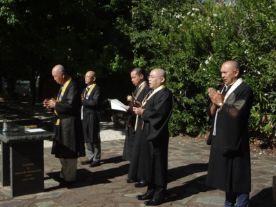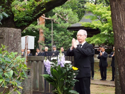 小林前総長は退任挨拶で広島・長崎・沖縄での戦没者追善法要ができたことを「心願成就」と感慨を持って振り返り、執政中の助けに深謝した。