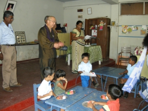40年以上前、日本寺本堂落慶の際には12月8日を中心に各教団や団体が、だいたい一日一座の法要を執り行いました。東大寺は南都六大寺からなる南都隣山会の一員として参加し、私も法要に出仕しています(昭和48年12月9日)。東大寺から4人でしたが、生き残っているのは私だけ(苦笑)。そうしたご縁もあったのでしょう。日本寺では光明施療院(無料診療所)や菩提樹学園(無料幼児保育施設)を運営しています。ブッダガヤには各国寺院がありますが、こうした活動をしているのは日本寺だけです。多くの人に知ってもらいたいと思い、竺主として行く先々で広報活動に努めています。