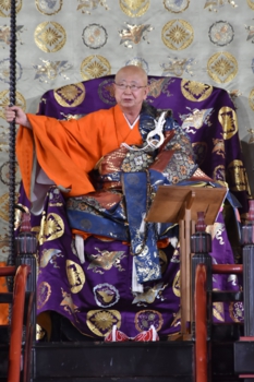 齋藤弘道・善通寺執行長(同派宗務総長)が、満堂の参列者330人に謝辞。その半生を善通寺と同派の興隆に捧げてきた菅法主の経歴を挙げ、「最も善通寺を知る方。この経験豊かな管長猊下を先頭に弘法大師御誕生1250年記念大法会に向けて邁進していく所存」と述べた。