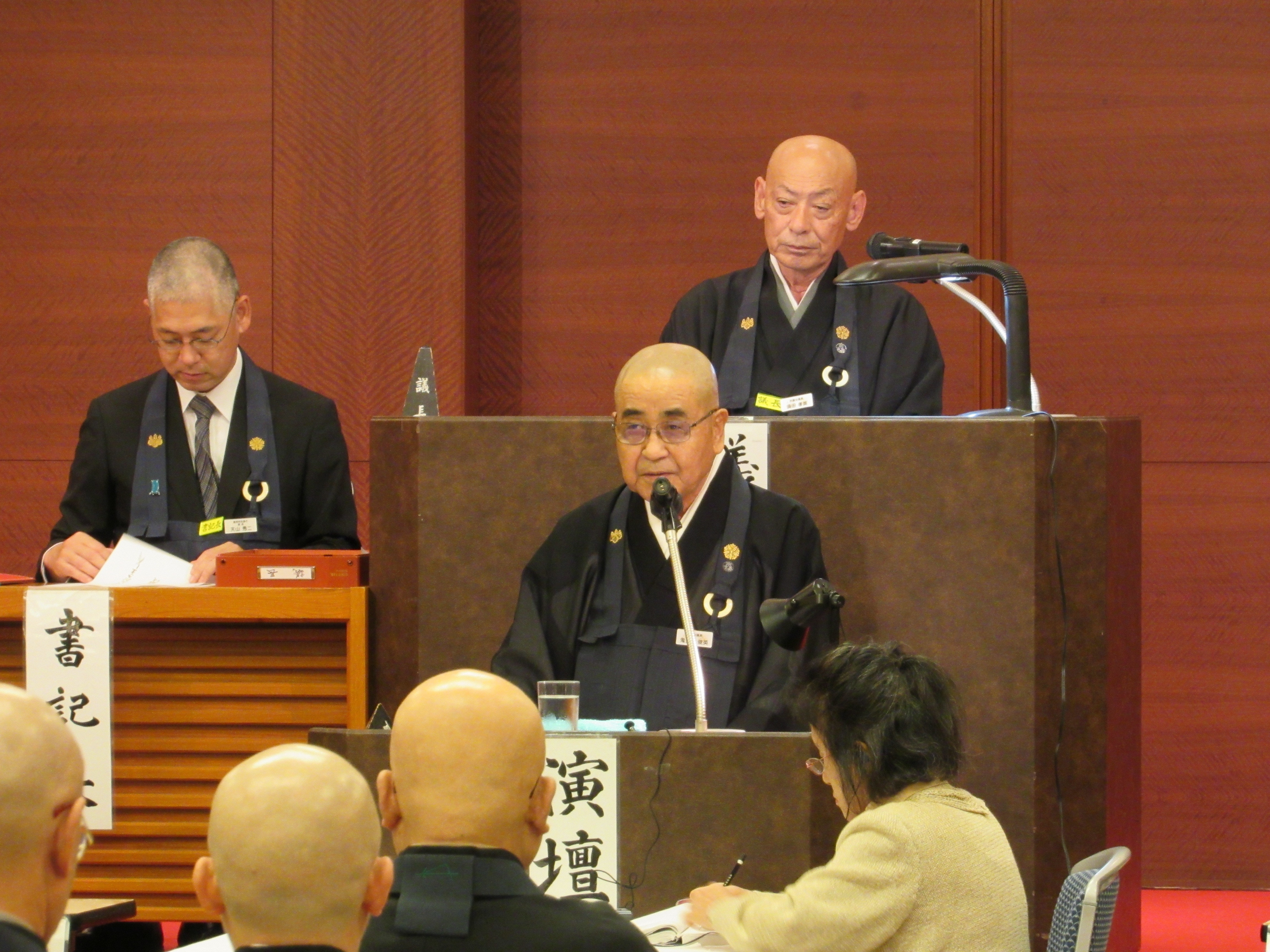 中川法政新宗務総長 日蓮宗は12月15日、小林順光宗務総長の任期満了に伴う新宗務総長を選出する第113臨時宗会を東京都大田区池上の宗務院に招集した。45議員は全員一致で中川法政議員(同心会)に投票し、新総長に選出した。前内局で連立を離脱した明和会は再度連立を組み、2021年の宗祖降誕800年に向け挙宗一致で動く方針が固まった。これに先立つ14日の第112特別宗会では議長に大塩孝信議員(同心会)、副議長に高津憲周議員(明和会)を選出した。