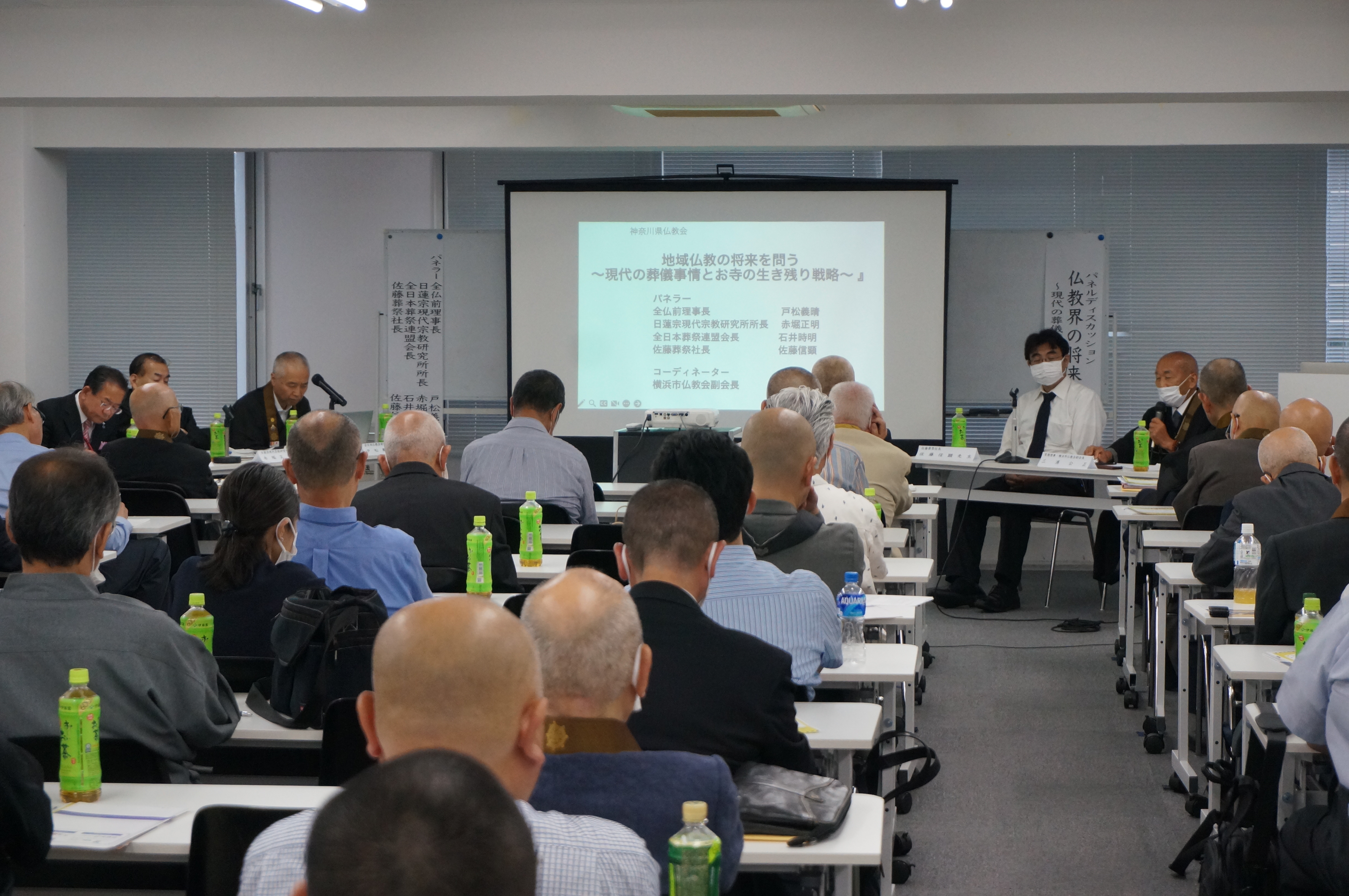 仏教界や地域仏教の将来を議論したパネル討論 神奈川県仏教会(佐藤功岳会長)は6月27日、横浜市内で開いた総会で、パネルディスカッション「仏教界の将来を問う~現代の葬儀事情とお寺の生き残り戦略」を開催した。ネット系葬儀仲介業者の台頭などにより地域仏教界を取り巻く外部環境が悪化しているとして、有識者が現状や対策を語り合った。