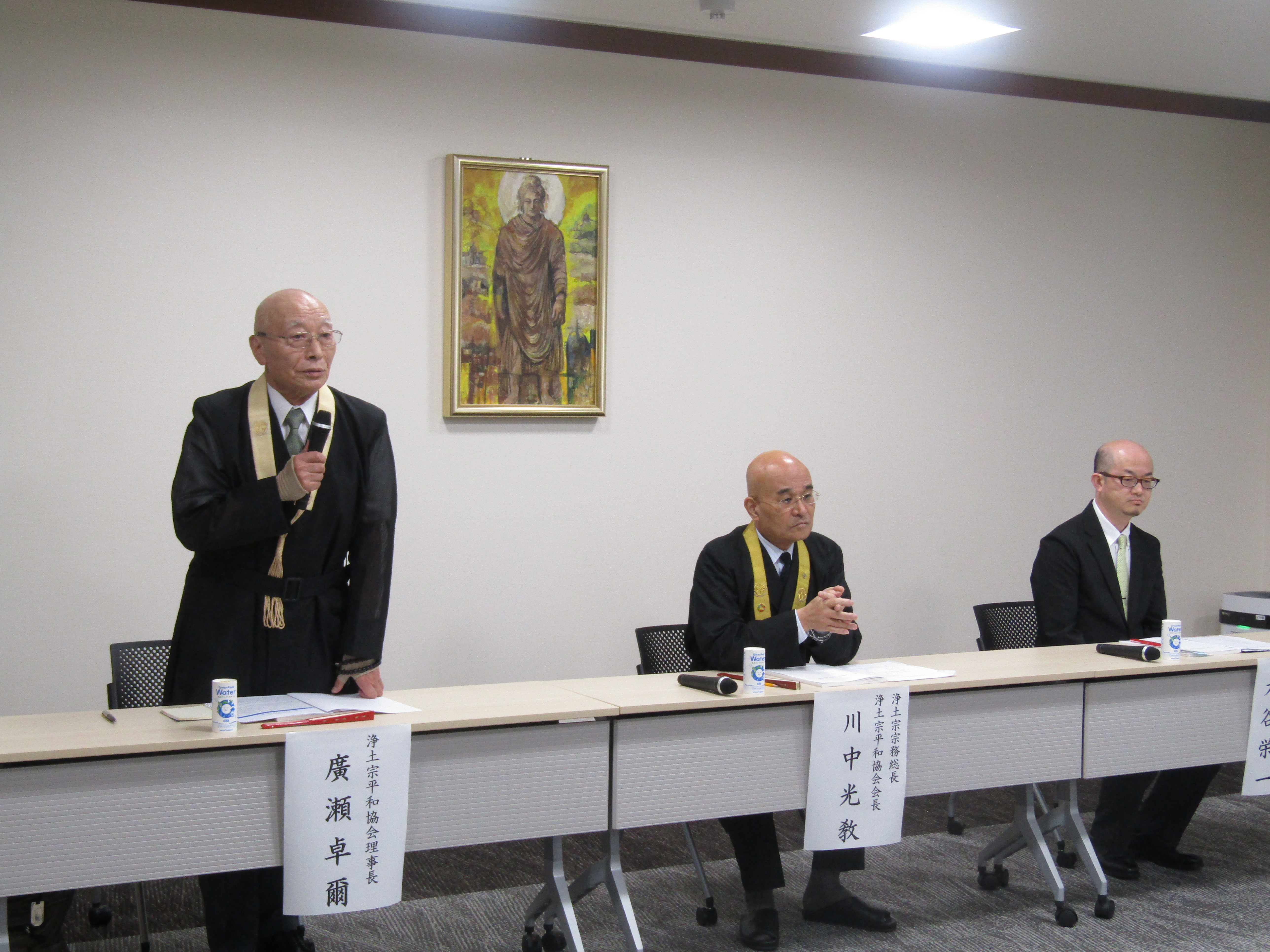 川中光敎宗務総長(浄平協会長)は「私は昭和25年生まれで、戦争を知らない。現役住職の皆さんがたも、ほぼ戦争を知らない人だと思う。本当に驚き、勉強させてもらった」と挨拶。自坊(当麻寺奥院)の軍人墓地は参拝する遺族が少なくなったことを受け。戦後75年を機に撥遣供養したが、その際、戦没地などを記録に残したことを明かし、このような戦時資料の記録化は大切だと力説。「今、改めて平和が求められていることに気づいてもらえたら、この報告書は大成功だろう」とした。