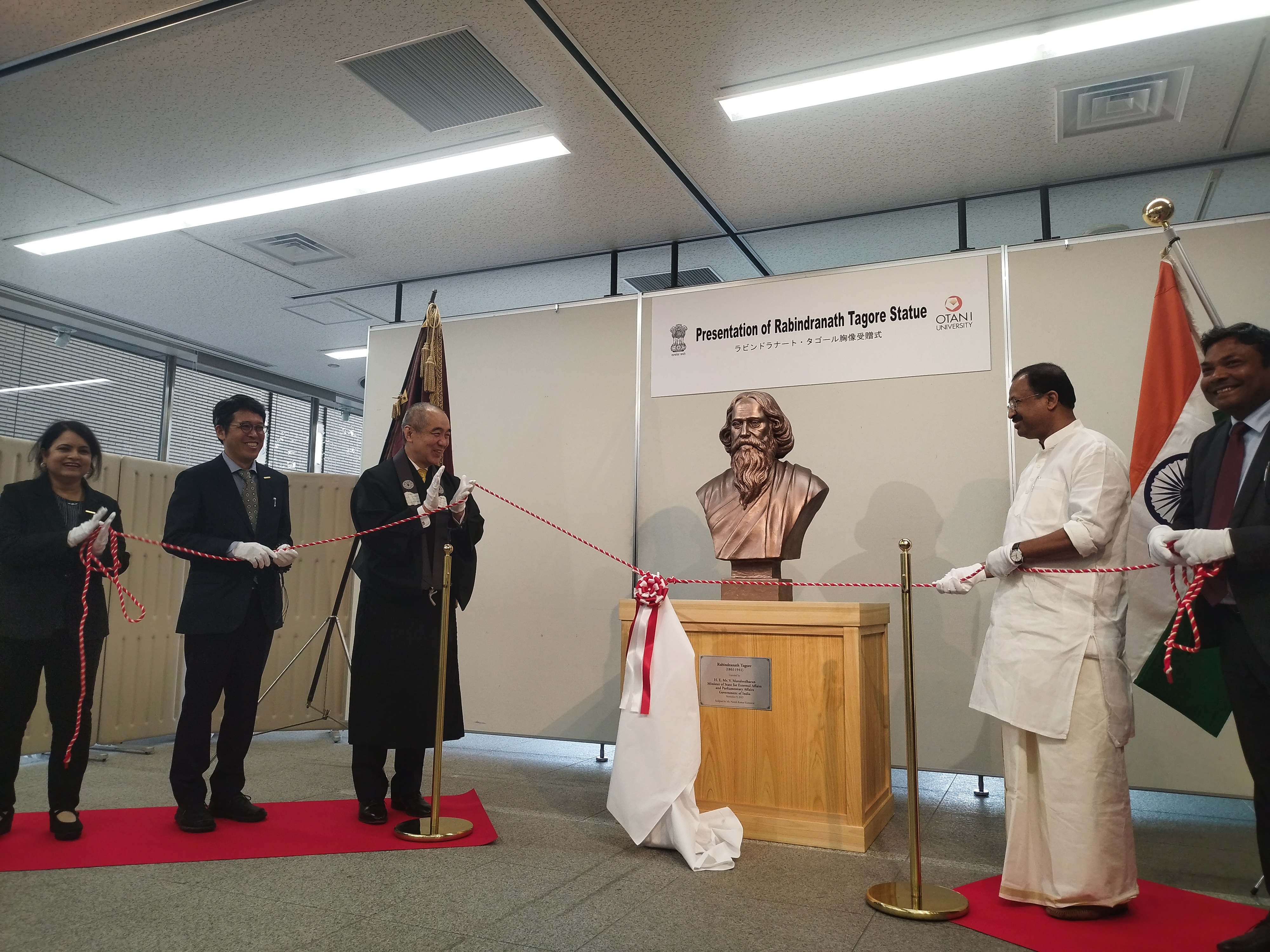 ユヌス博士は2019年の龍大創立380年記念式典の基調講演を行っており、来学は2度目。龍大にはユヌス博士の推奨するソーシャルビジネスを研究し実践するための機関「ユヌスソーシャルビジネスセンター」が設立され、オンラインを通じて教職員や学生と学びを深めてきた。入澤崇学長はこういった縁に感謝し、「社会的課題の解決に重きを置くソーシャルビジネスの概念は、本学が行動哲学としている自省利他を基本に据えた『仏教SDGs』と深いつながりを有するものです」と述べた。