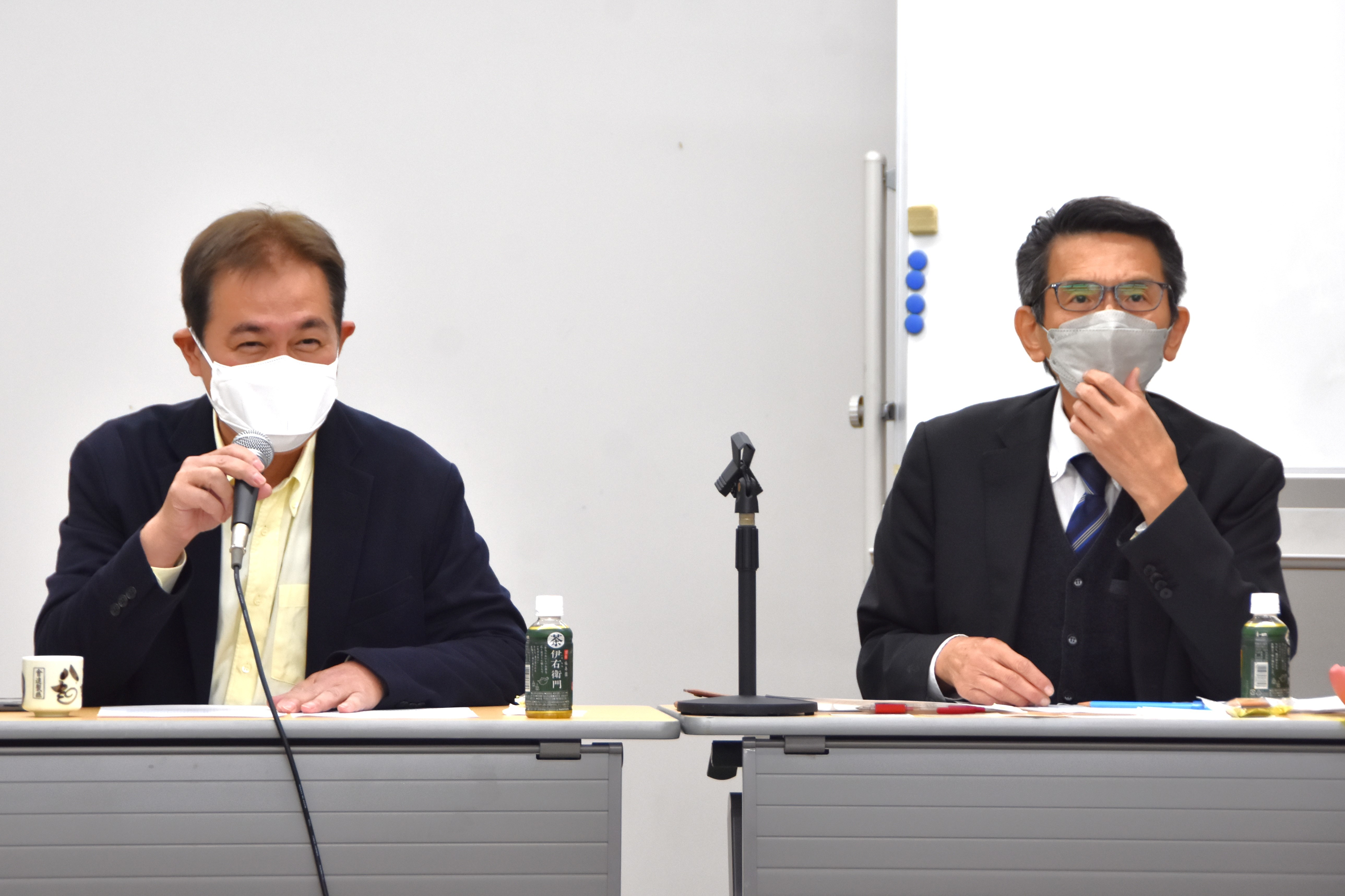 本山氏(左)ら9研究所の15人が参加した会議各教団の研究所などでつくる「教団付置研究所懇話会」が、旧統一教会(世界平和統一家庭連合)の問題に対して一定の見解を導き出すための検討を始めた。東京都台東区の大本東京本部で12月5日、第1回目の意見交換会を開いた。