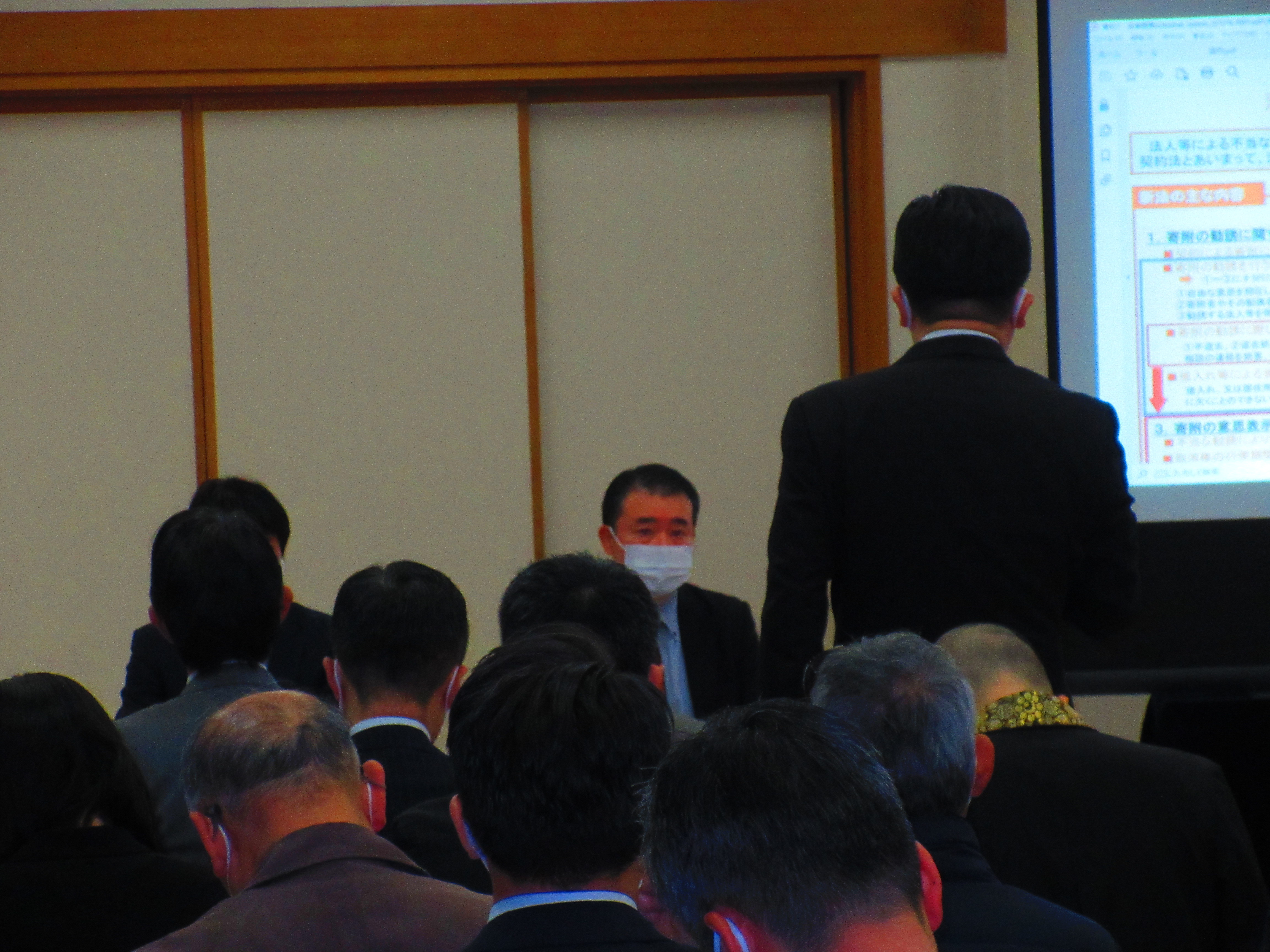 ある参加者は他教区の事例として、寺族のいない住職がある教師を後継者に指名、両者が合意しその旨を記した文書も遺したが、突然の死去の後に法類総代らにより別の教師が後任住職に指名されたケースを挙げ「調停などの助けを求める場所はどこか」と問うた。藤野部長は総務部が相談窓口となり、法律の専門家や教区長らと情報共有しながら対応していると回答した。