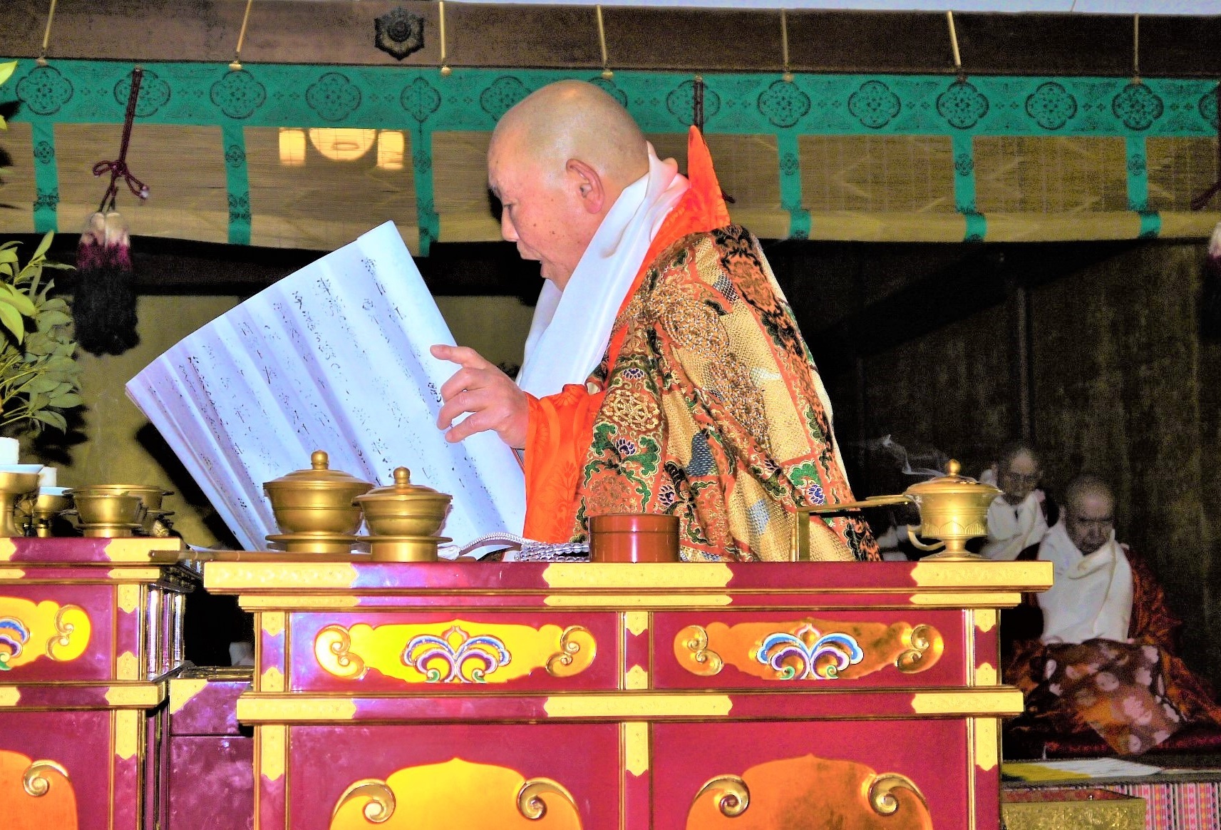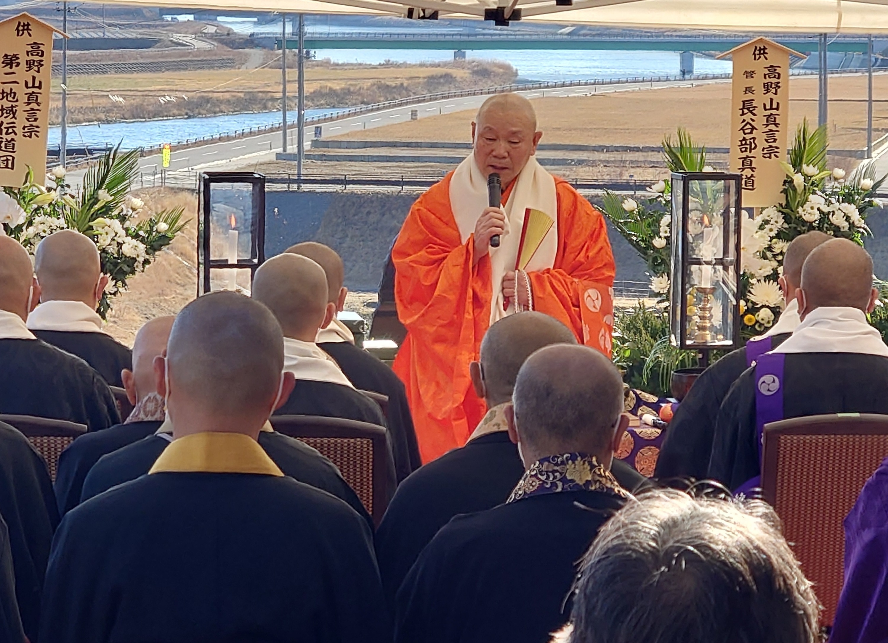 瀬川門跡が謝辞。「森羅万象ことごとく、大日如来と同じいのちを有する。仏の子として助け合い信じ合う心豊かな仏の国、密厳国土を皆様と共にこの世に実現しようではないか」と呼びかけた。