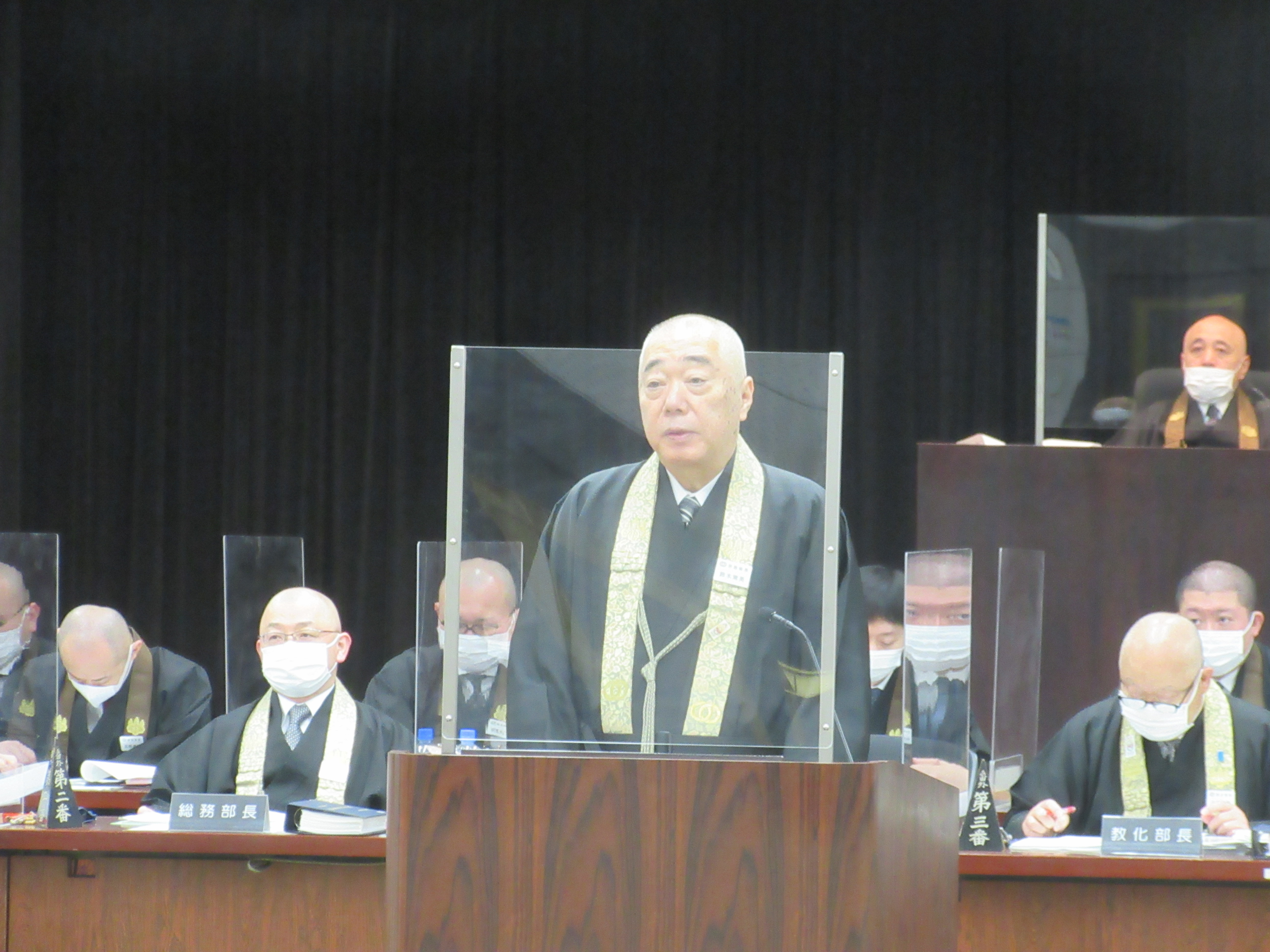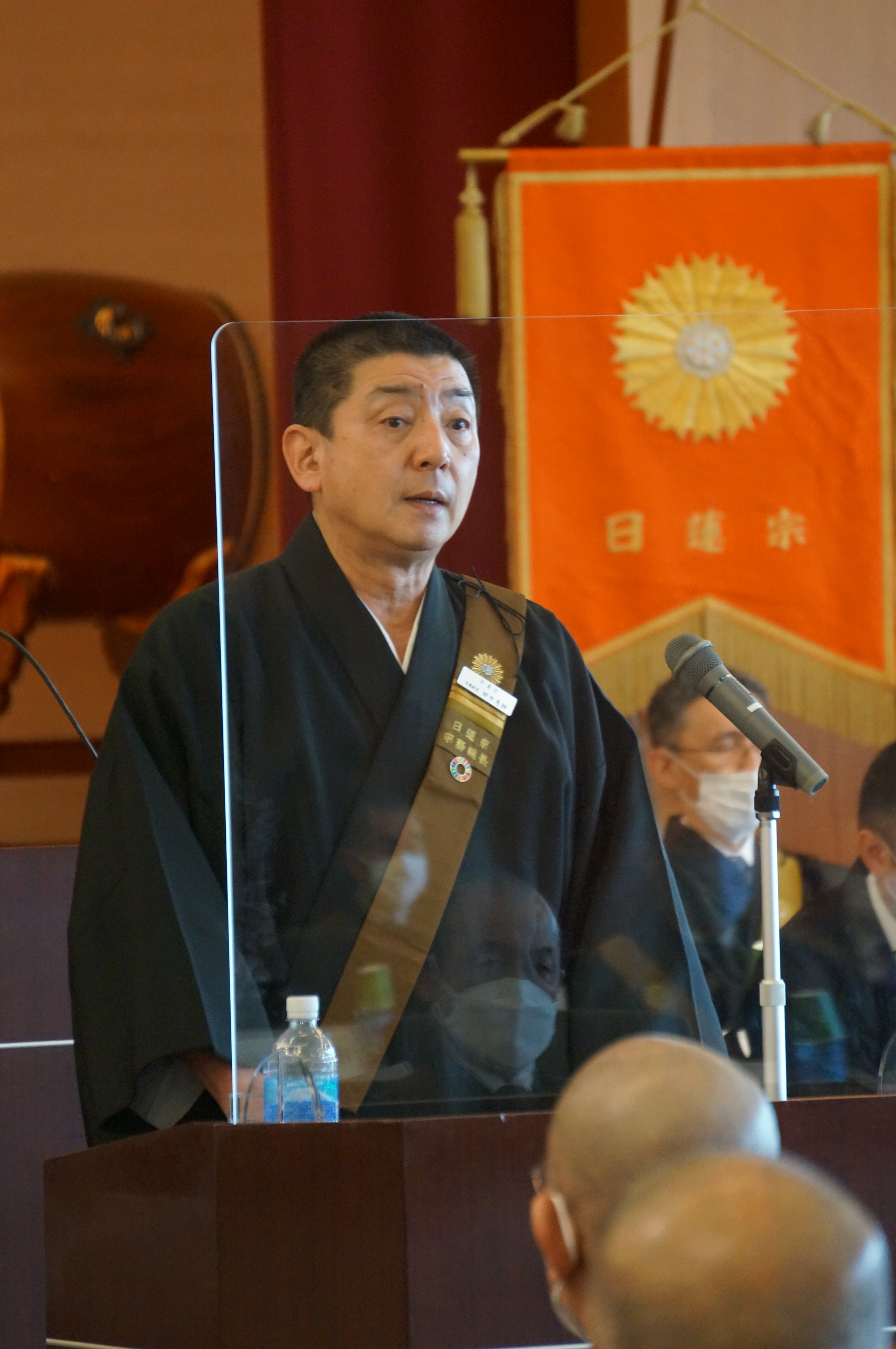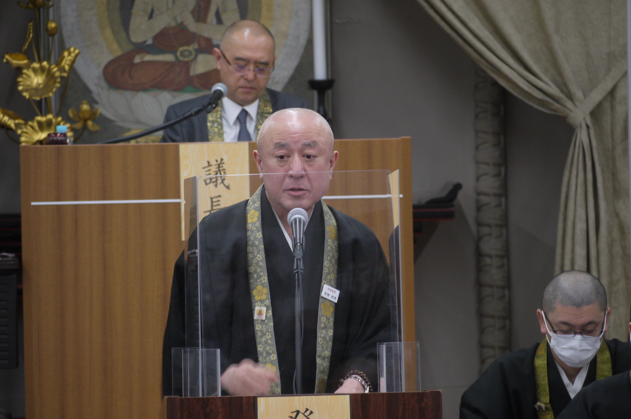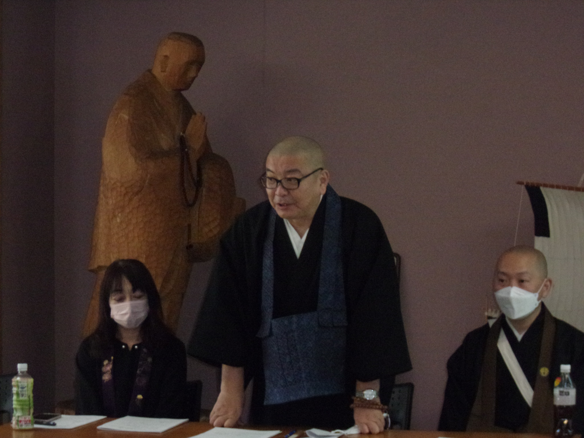 2期目となる花岡理事長は「2年前に理事長を受けた時は、(コロナ禍で)活動が出来なかった。昨年、川崎大師で69回大会を行い、そこから活動が色々と出来るようになり、他団体の活動も始まって、理事の方々にもそうした会合に出ていただいている」と感謝し、「色んな宗派の方が集まっているので勉強させていただきたい。2年頑張りますのでお力添えをお願いします」と協力を呼びかけた。