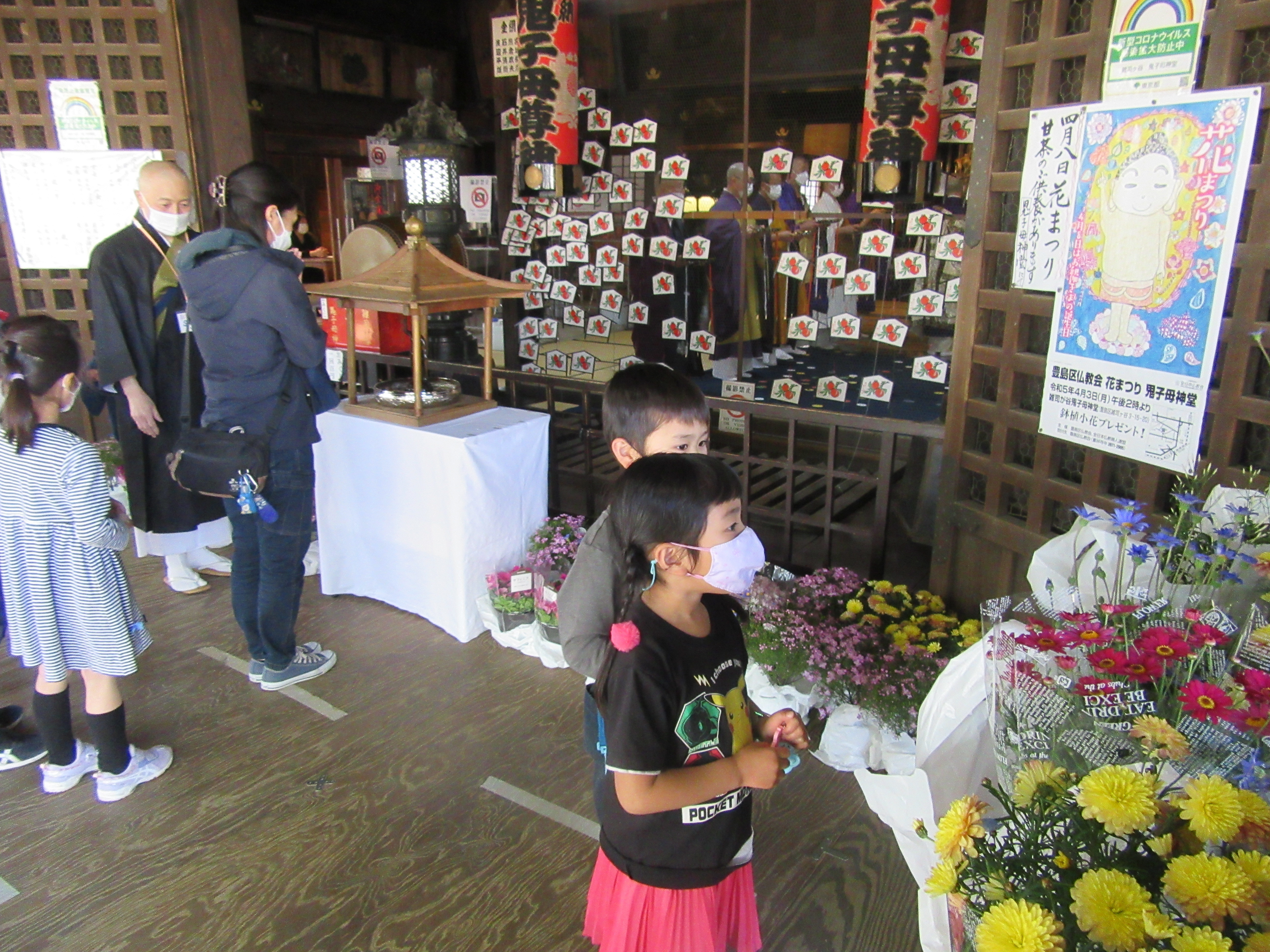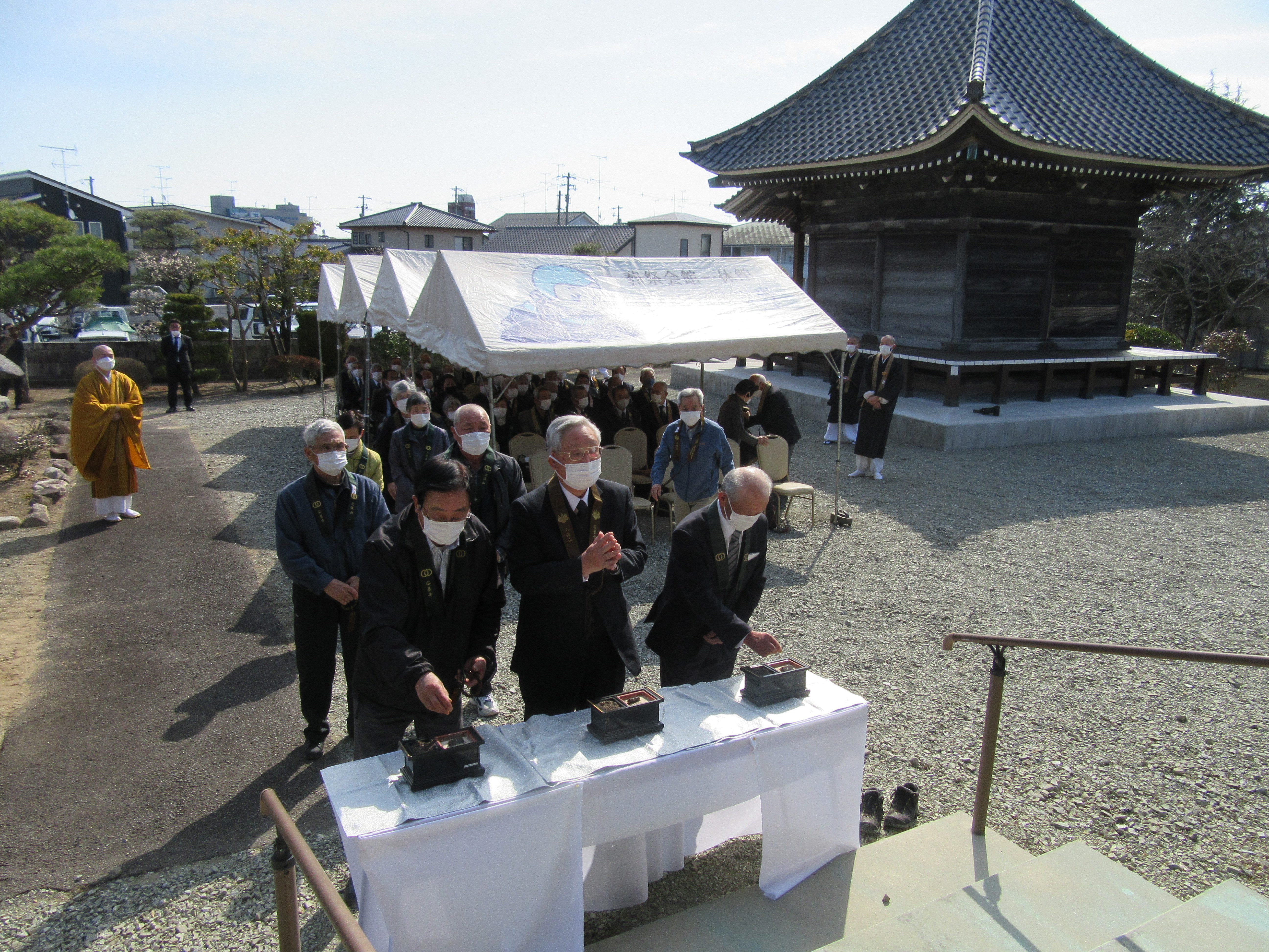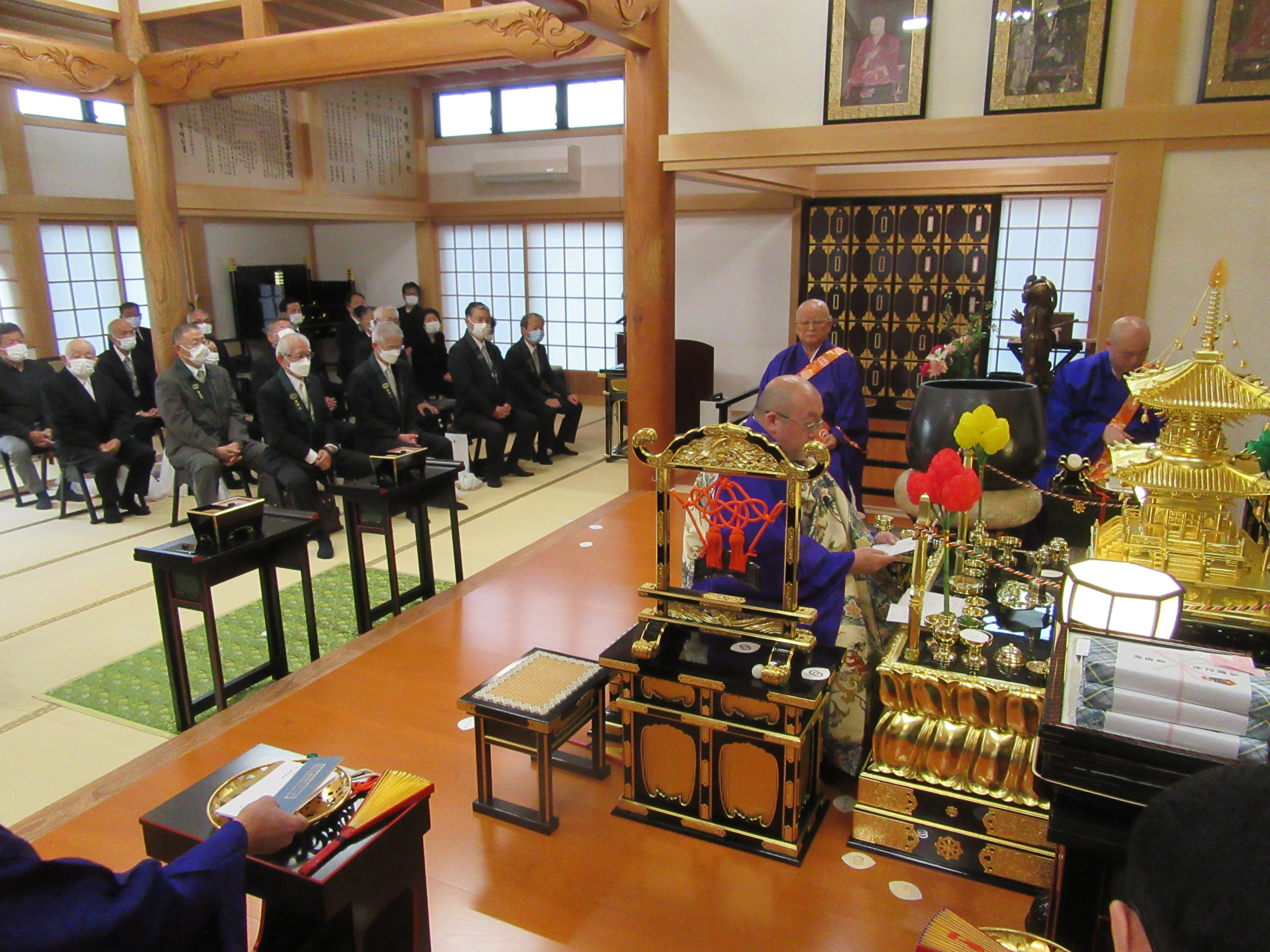 午前10時半、午後1時、午後3時には慶讃法要を厳修。1回目は宝仙寺の富田道生住職、2回目は堀内会長、3回目は東京第5号の星野亮裕支所長が導師を務めた。