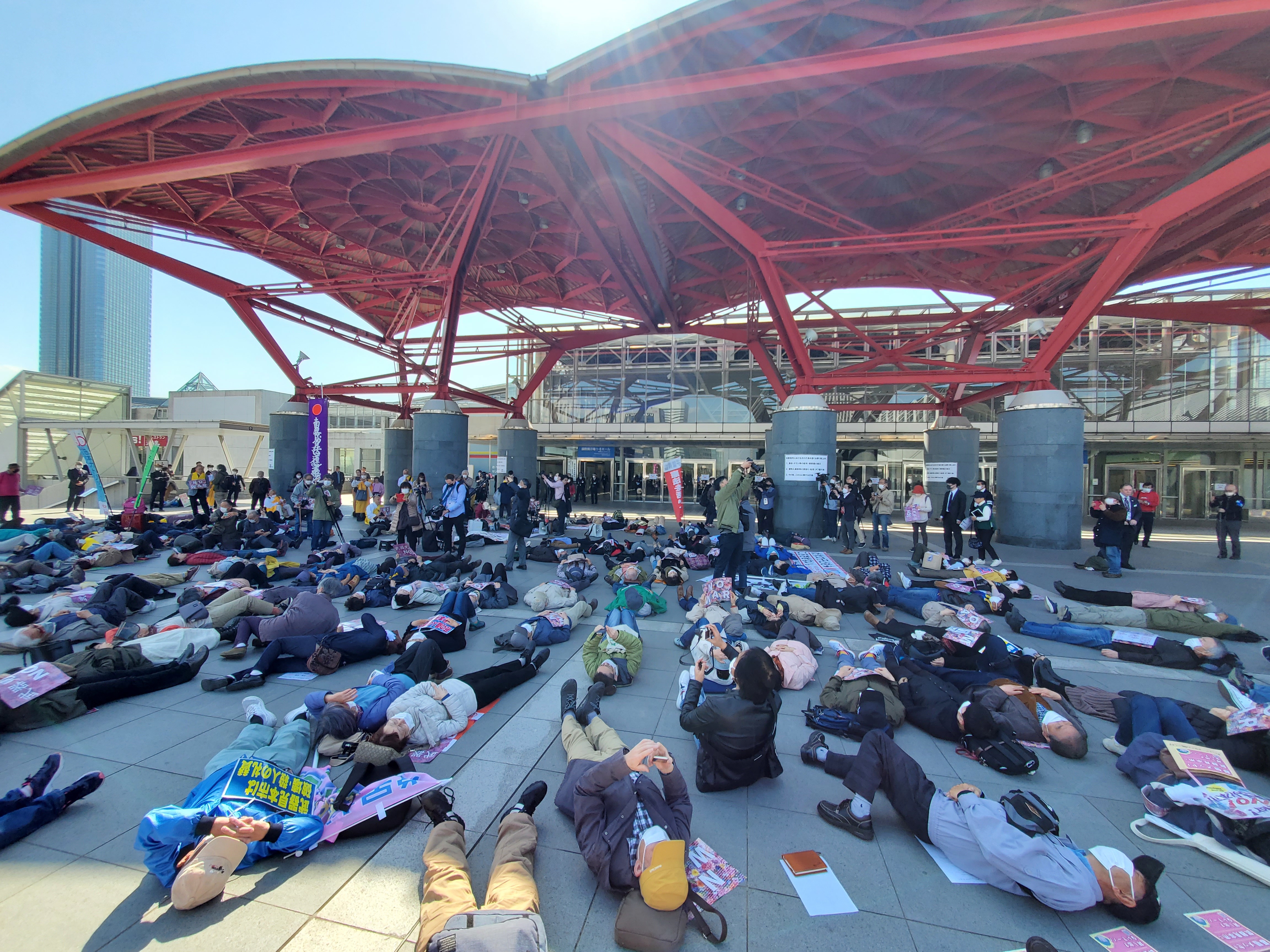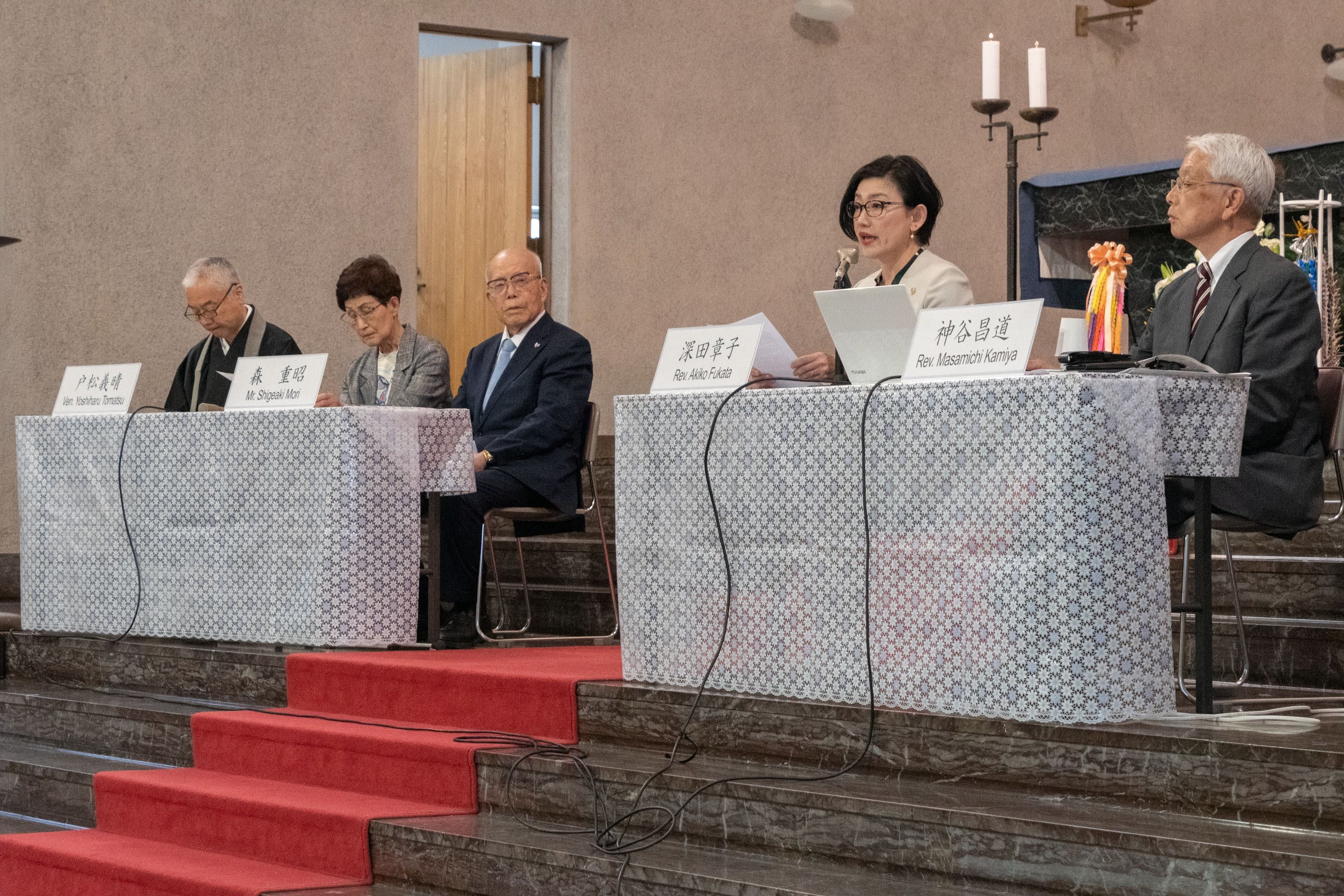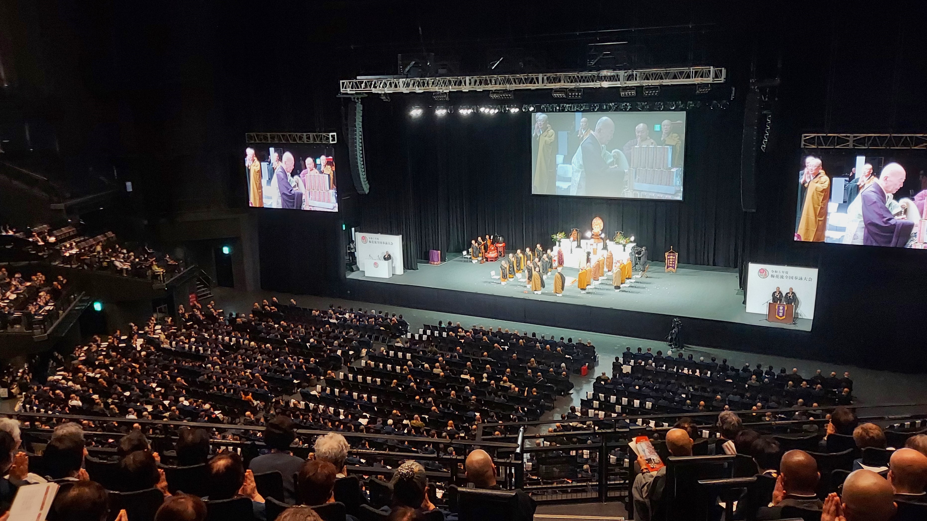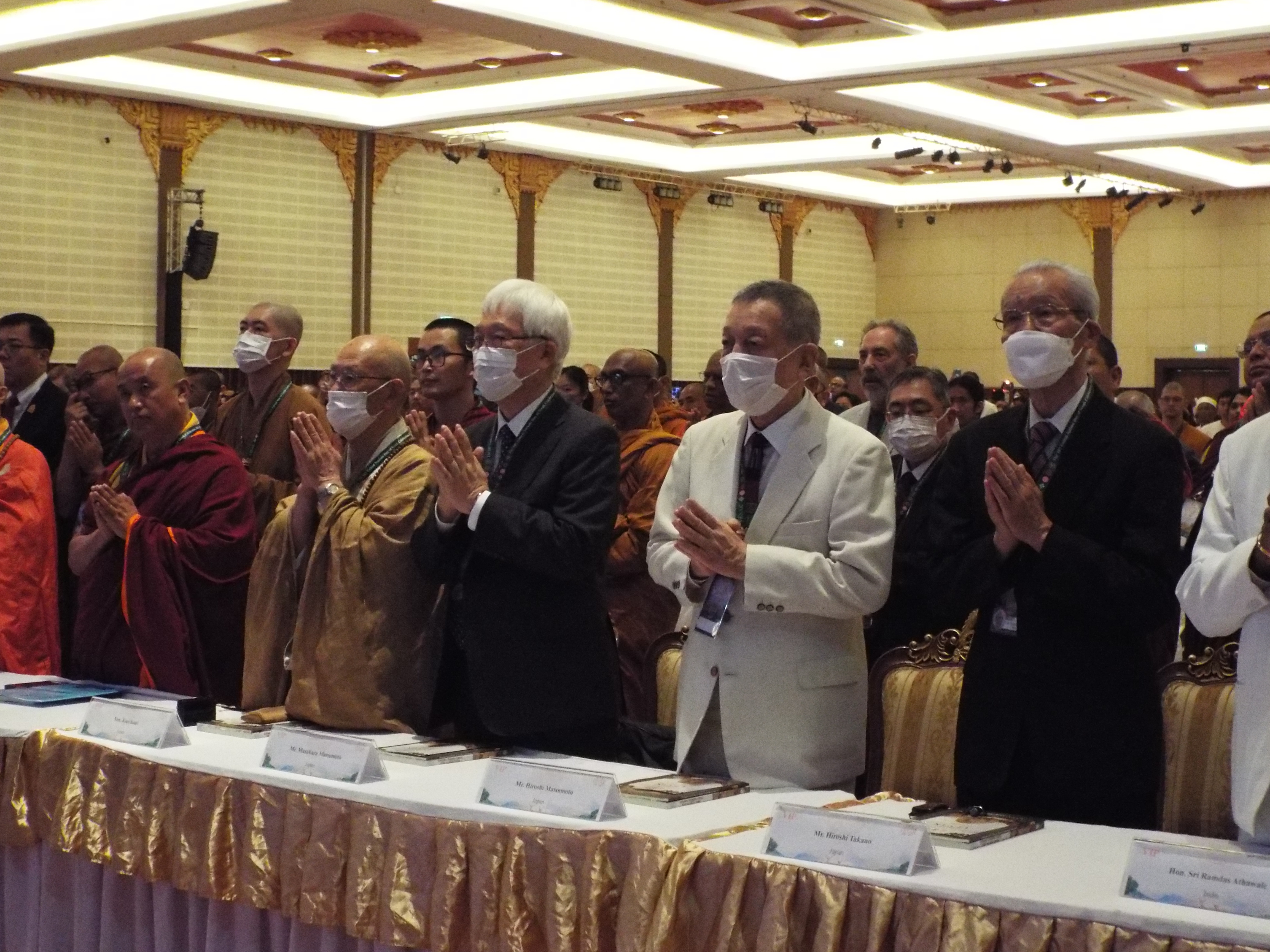 世界平和祈願法要では、ロシア・ウクライナ戦争の終息を願い戦病死者などを追悼した。日本側の柴田哲彦副会長(浄土宗大本山光明寺法主)は「全人類和合共生を祈願し奉る」と、第30回大会(2009年5月)で除幕された人類和合共生祈願碑(韓国・神勒寺に建立)を意識した表白を述べた。