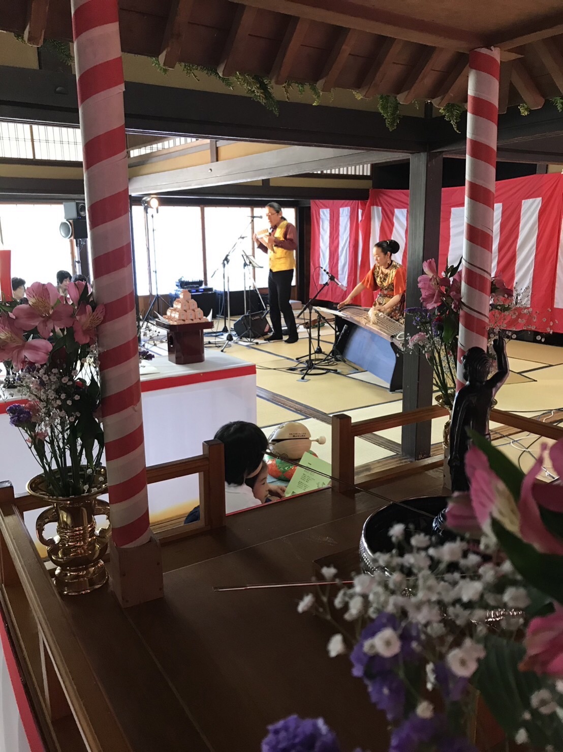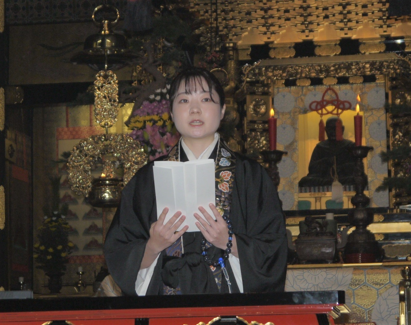 大本山總持寺で維那を務める大山文隆氏が前もって法要の習儀を行い、英語で僧侶たちに作法を伝授した。当日は天井を覆うほどの折り鶴を吊り下げて堂内を荘厳。随喜した多くの青年僧らが、梅花流詠讃歌が奉詠される中、参列者の間を進んで内陣へ向かった。国際布教師の永年勤続表彰もあり、秋葉玄吾総監らに賞状が授与された。