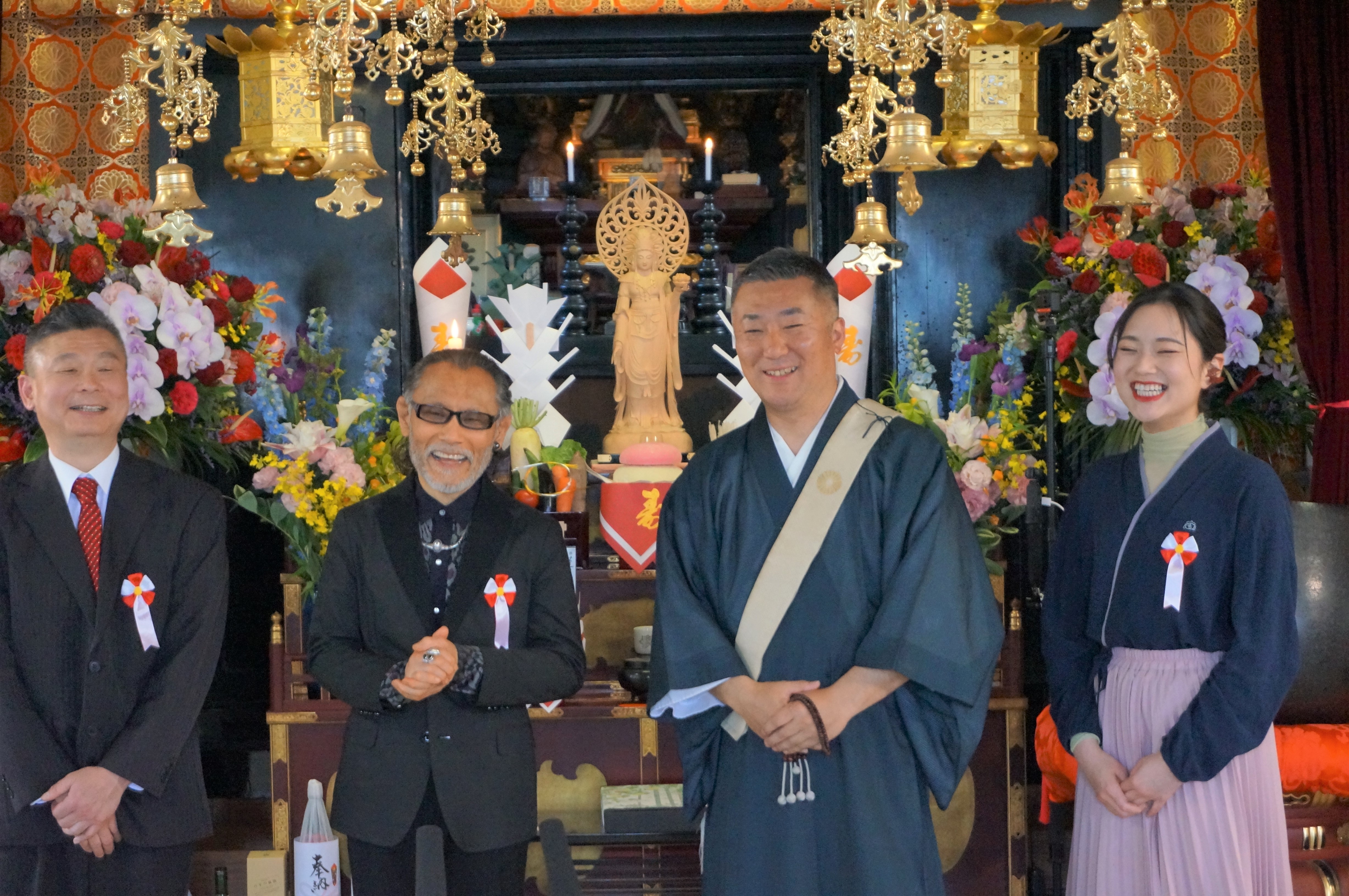 山口社長は「禅師様を迎え素晴らしい法要が出来て感謝感激です」と喜んだ。この日は山口社長の翠雲堂の株主でもある家族が揃って参列。タレントで女優、娘の山口もえさんも駆け付けた。