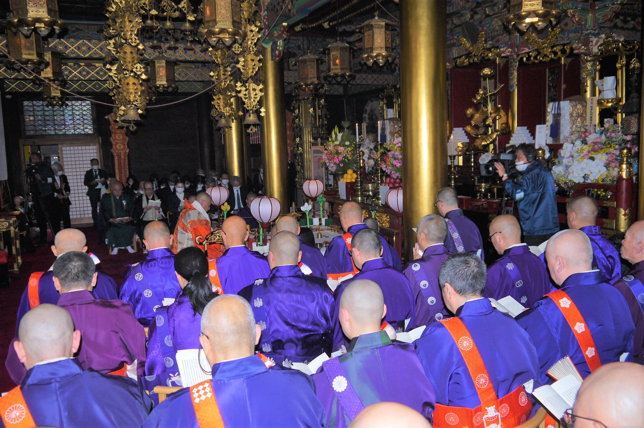 法要は石附周行貫首が大導師、渡辺啓司監院が先導師をつとめて厳修。黄金の間に安置された本尊釈迦如来像が開眼された。
