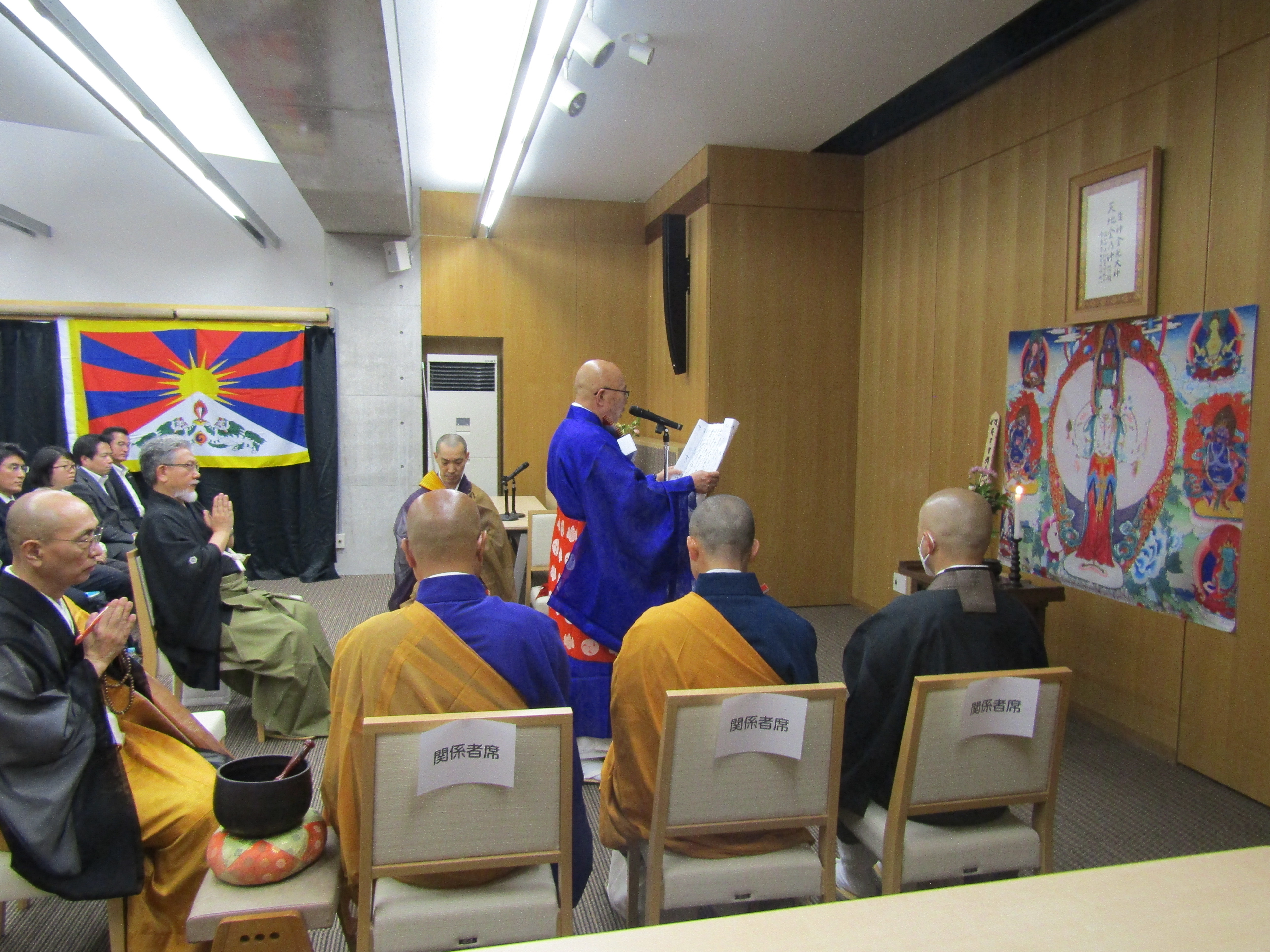 室内にはチベット国旗と日本国旗が掲げられ、金光大神の言葉の額の下に仏画を奉安し、チベットの平和を祈念する法要が営まれた。上田尚道代表(岸和田市高野山真言宗明王院住職)は表白で、「法王以下全チベット人は仏法に基づきて耐え難きを耐え対話の精神をもっては中国政府に平和的解決を求め続けたり」と愛と非暴力の姿勢を称賛。この日は1989年に天安門事件が起きた日であり、民主化運動のために命を落とした学生たちの菩提も弔った。