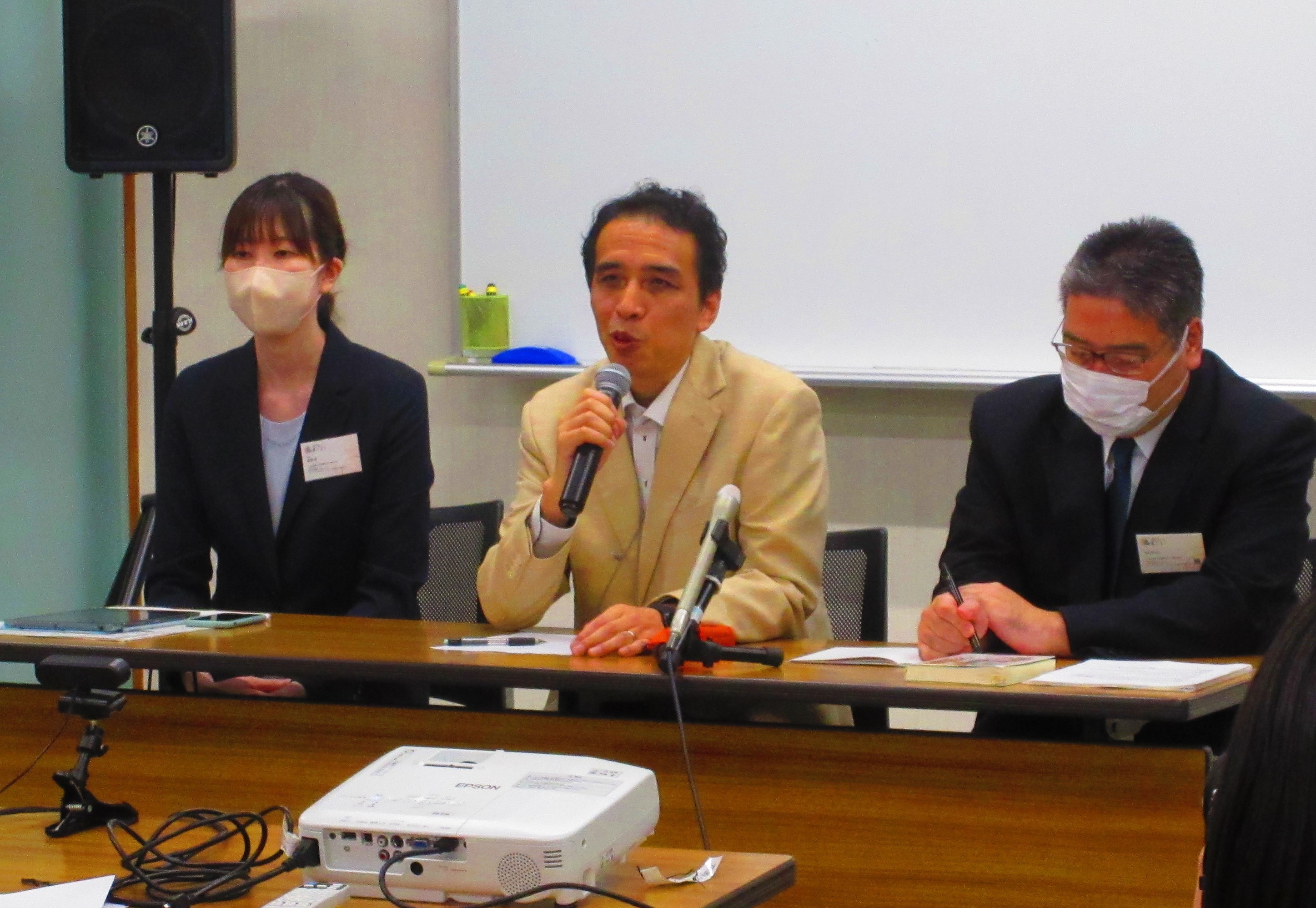 質問に答える秋本理事長(中)、右はちざわりん氏 教育や福祉、行政の現場における「宗教2世」にスポットを当てた特別セミナー「宗教2世問題―どのように対応するか」が16日、オンラインを併用して都内で開かれた。主催は宗教2世を支援する(一社)「宗教2世支援センター陽だまり」。