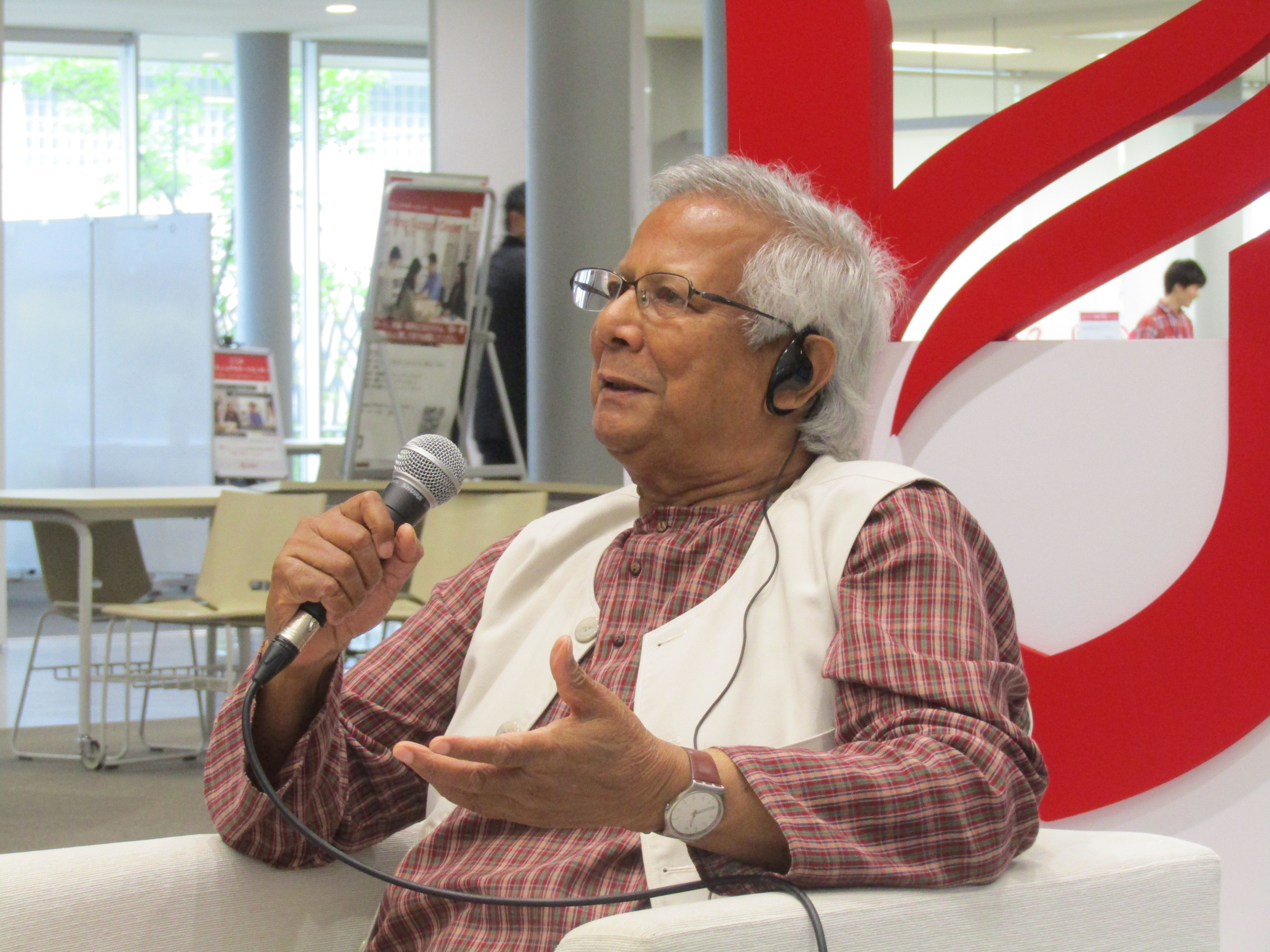 ユヌス博士は受賞挨拶で、「もはや社会課題を脅迫で解決する時代ではない。かつて恐竜がこの惑星の主だった時代があったが、恐竜は滅びた。人類は今のこの惑星のキングだが、正しいアクションを取らなければ恐竜と同じように滅びるだろう」と、社会を根本的に変えなければならないことを強調。グラミン銀行のコンセプトについては「金融機関は手元に何もない人に対しては門前払いだったが、これは根本的な過ちだった。たくさんお金がある人にお金を貸し出すのはおかしいと思いませんか?手元に何もない人にこそ、一番に助けなければならないはずです」とした。近年、米国グラミン銀行では20万人を超える貧困女性に対し年間10億ドルが貸し出され、経済的自立の助けにしていることなど、大きな手応えも語った。