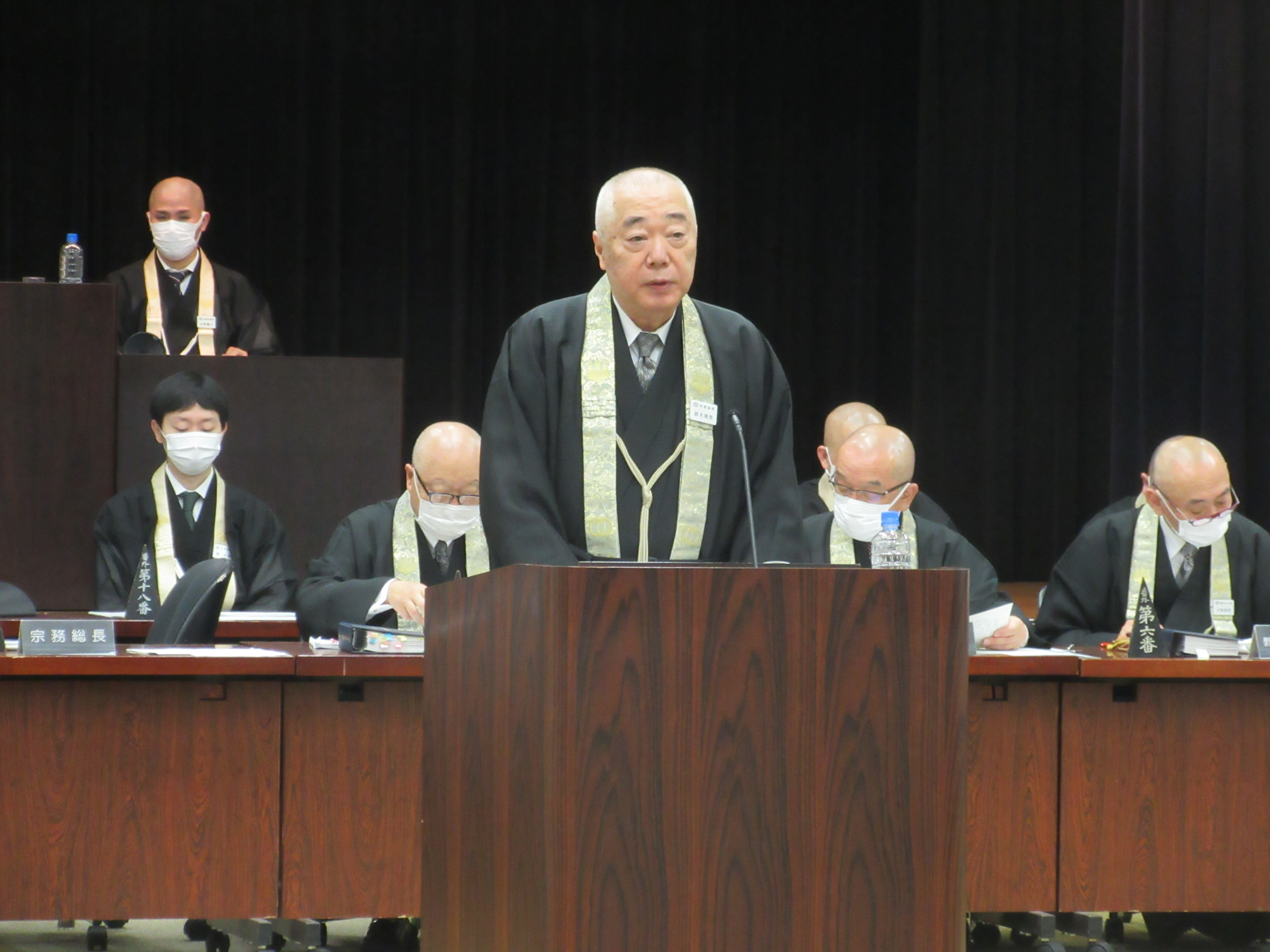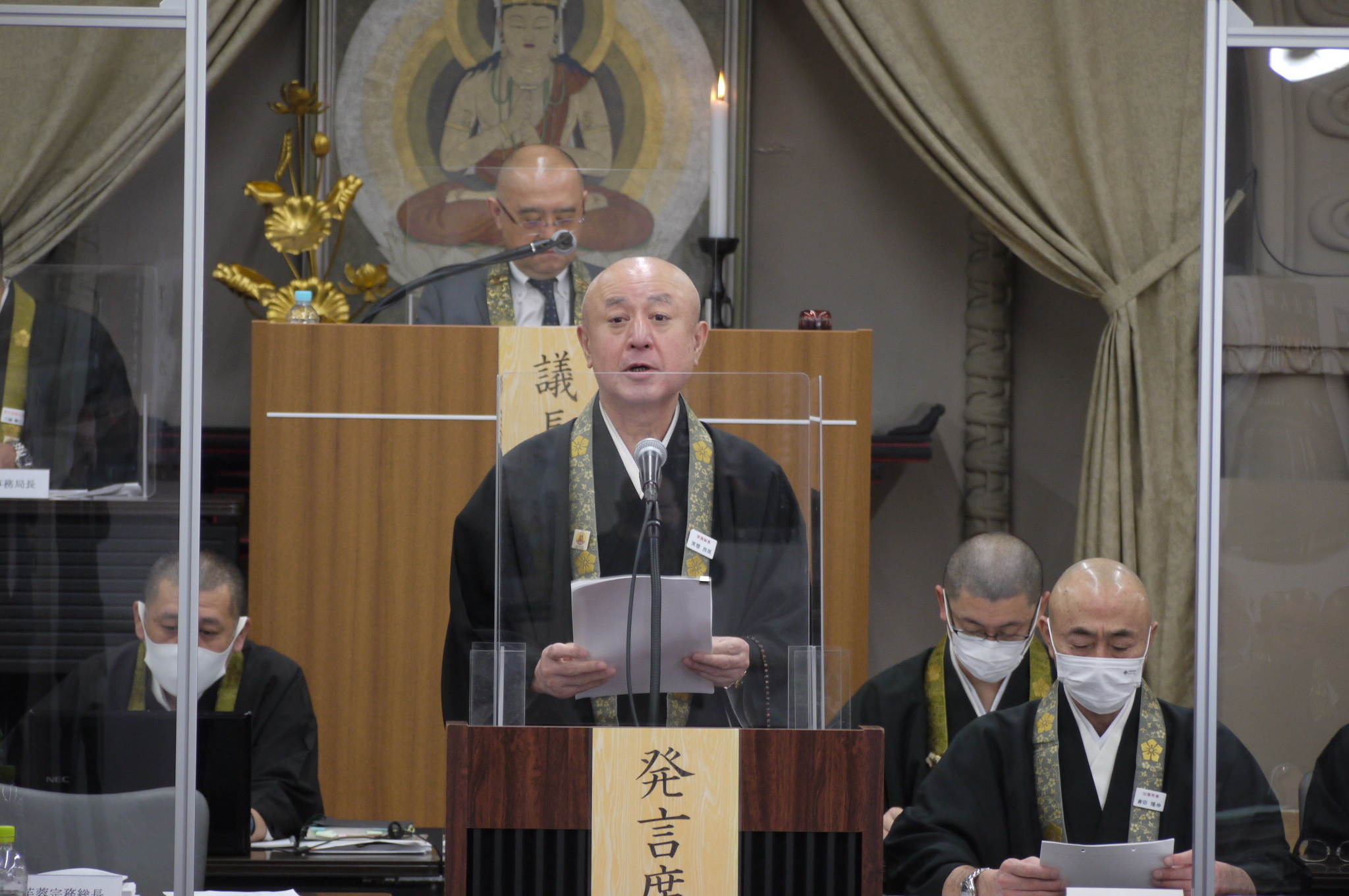 演説する服部総長 曹洞宗の第142回通常宗議会(浅川信隆議長)が6月26~30の5日間を会期に、東京・芝の檀信徒会館で開かれた。服部内局が最重要課題に掲げるソートービル運営の問題で、今後20年間で生じる修繕費の見通しが54億円超に上ることが分かった。服部秀世宗務総長は演説で、「このまま建物を維持していくべきか、そうでない場合には、具体的にどのような活用をしていくことで宗門にとってよりよい選択となるのか検討する」と述べ、来年2月の次回宗議会までに東京グランドホテルの先行きを含め方針を示すとした。