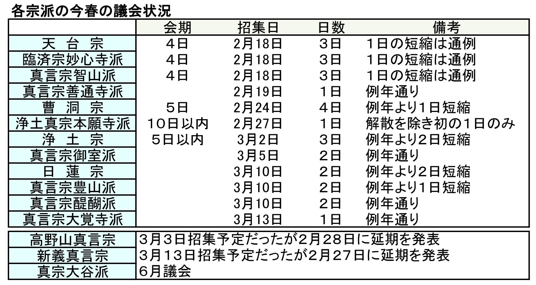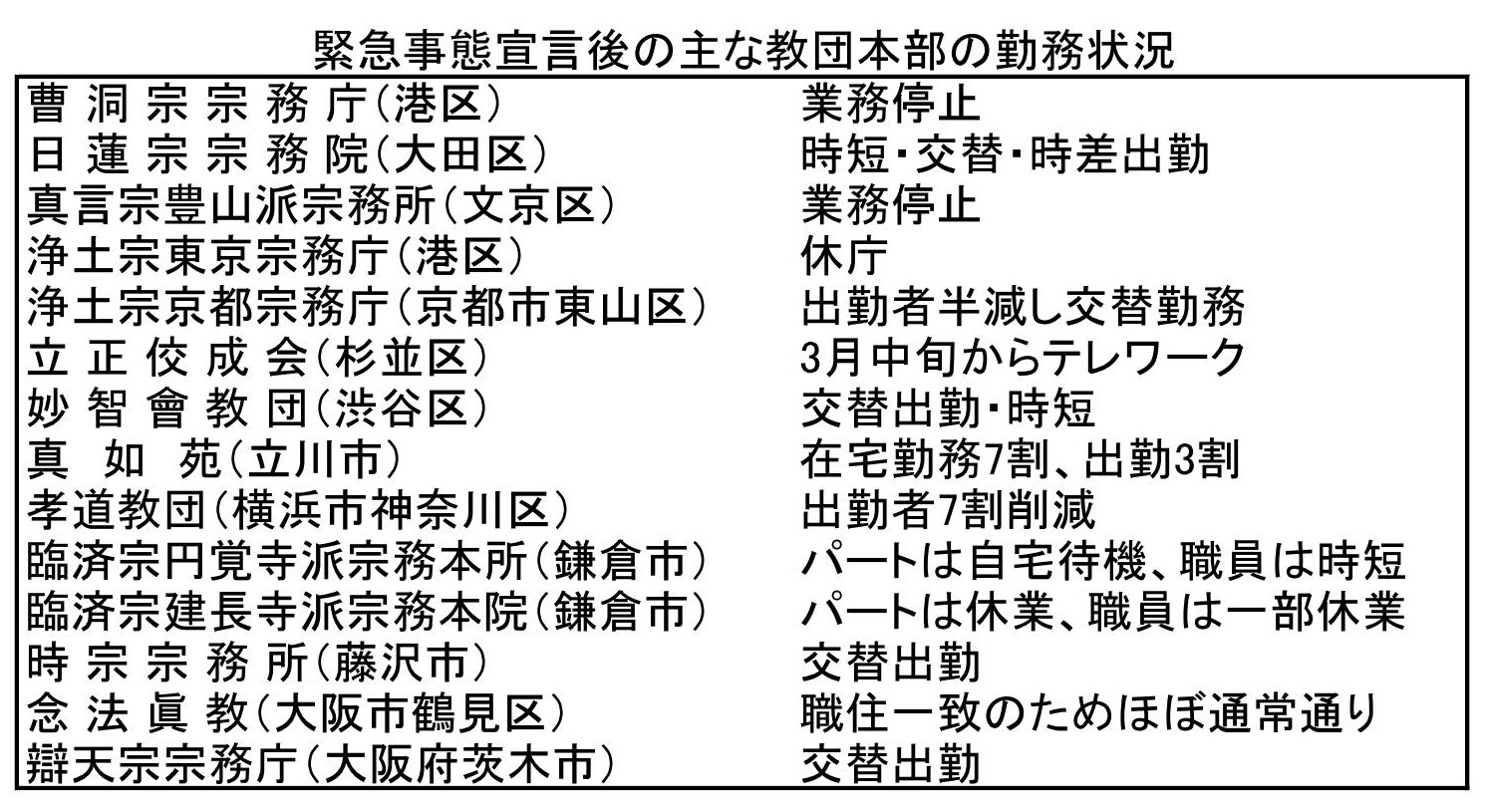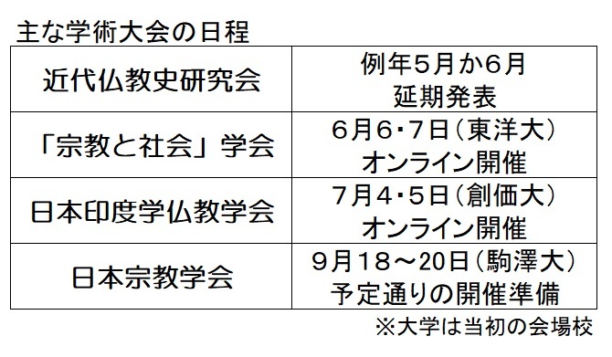 伝統仏教では2~3月は宗会シーズンだが、延期や会期短縮で対応した。そこから見えてきた課題は、意思決定に時間がかかるということだ。新宗教教団は、会長や理事長といったトップの判断で即時対応しやすいが、議会制を取り入れている教団はそうはいかない。臨済宗妙心寺派のようにオンラインを併用する議会を認めた宗派も出てきた。本山や教団本部への招集が困難な場合にどのような方法で意思決定ができるかを検討する必要があるだろう。