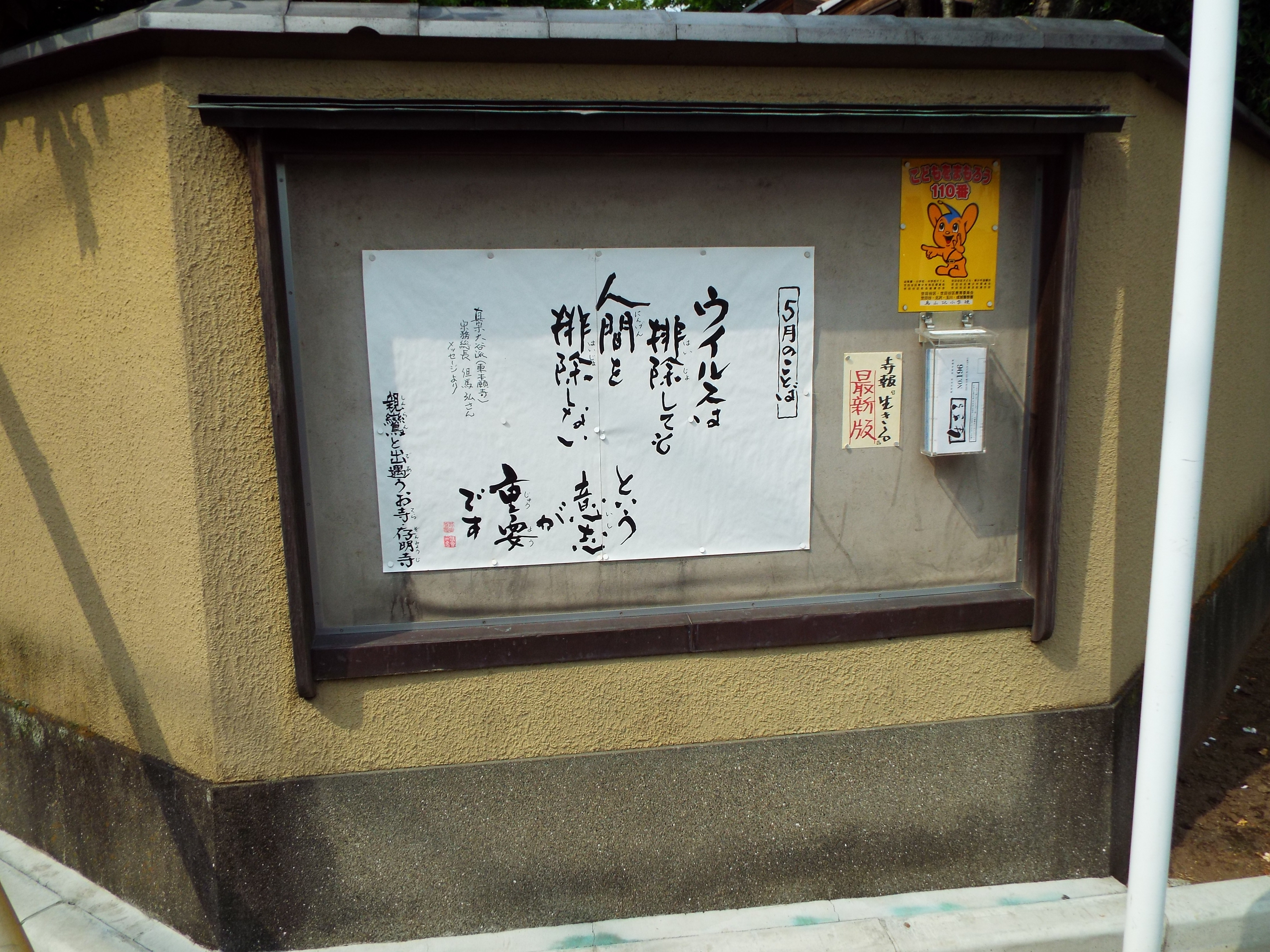 大賞を受賞した明導寺掲示板 境内にあるお寺の掲示板を表彰する「輝け!お寺の掲示板大賞2020」(仏教伝道協会主催)の受賞作品が7日、同協会のホームページで発表された。ツイッターやインスタグラムなどSNSを通じた応募総数は1677点で昨年(925点)を大幅に上回った。