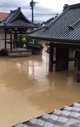 一気に境内に流れてきた高さ2㍍もの水に、なすすべもなかった玅笑寺。住職一家6人は皆、ヘリコプターで救出された。「何しろお寺を守らなければならないと思っていた」という笹井住職。避難所から戻ってきた10月15日、雨は止んでいたが、境内中が泥にまみれ、山門は大破、本堂の120枚の畳はすべて流され、多くの仏具や寺宝も行方不明となった。水に浸かった大般若経はとりあえず乾燥させているものの、ほとんど諦めている。笹井住職は「仏具だって未だに一つとして新しく買ってはいません」と、正直に苦衷を吐露する。本尊や位牌が高所に祀られていたため無事だったのが数少ない救いだった。「食料や水も備蓄していましたが、1階に保管していたのですべて流されてしまい何の役にも立ちませんでした」と振り返る。