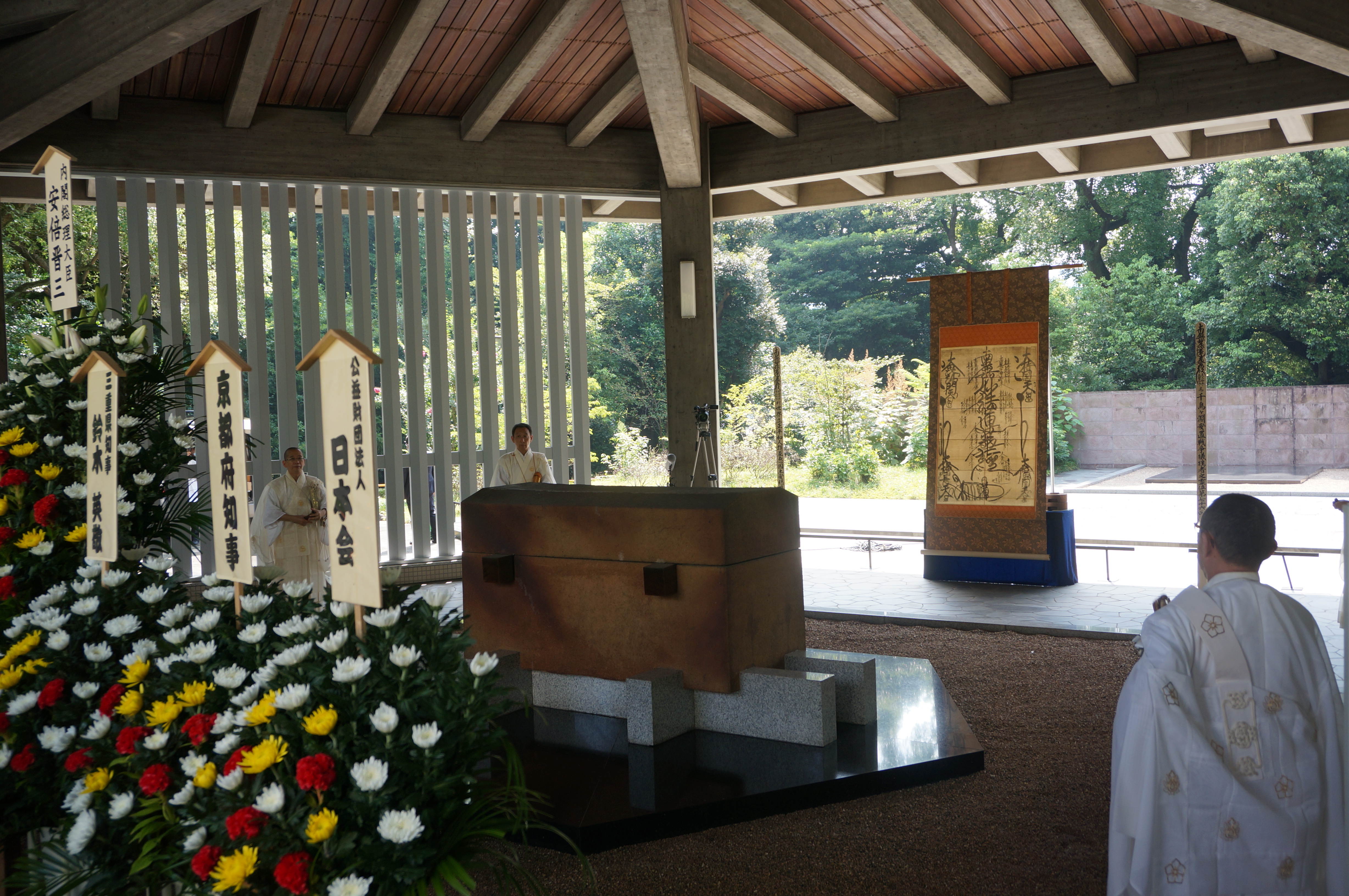 その千鳥ヶ淵墓苑で毎年9月18日に全戦没者追悼法要を行っているのが浄土真宗本願寺派である。満州事変から50年の昭和56年(1981)に始まった。法要案内にある「法要の願い」文書で教団の戦争協力について「いのちを奪い、いのちの尊厳を踏みにじる戦争という行為に加担し、積極的に協力してきたのも、また私たちの教団の歴史です」と明記している。