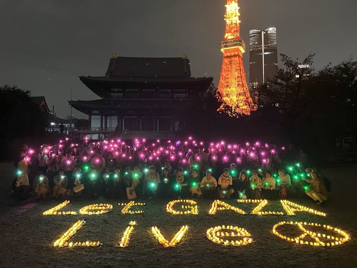 さらに進むとひとさじの会の拠点(事務局)、浄土宗光照院(吉水裕光住職)がある。副住職の吉水岳彦氏は同会事務局長で、今回のエクスカーション企画に携わった。チベット風の五色の仏旗が荘厳され来訪者を迎え入れた。墓地の一画に「あさくさ山谷光潤観音菩薩像」を安置した施設がある。“慈愛の光で心を潤わせ、共にやわらかく生きていることを願い”、そう名付けられた。