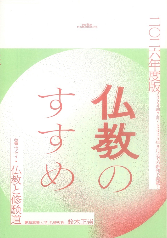 『仏教のすすめ』には2024年7月から2025年6月までに刊行された仏教・宗教関連の新刊452点のデータを収載。出版社の新刊書だけでなく、自費出版物や寺院発行の論集もある。また各書目にはQRコードを付した。巻頭エッセイは慶応義塾大学の鈴木正崇名誉教授の「仏教と修験道」を掲載している。
