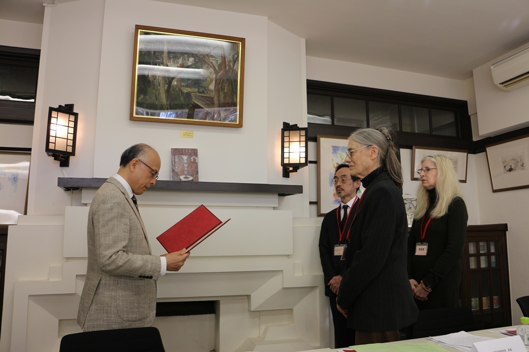 授賞式には執筆者のモニカ・ベーテ氏(中世日本研究所)、パトリシア・フィスター氏(同)、原田正俊氏(関西大学)が出席し、東京女子大学の森本あんり学長から表彰状と副賞が授与された。